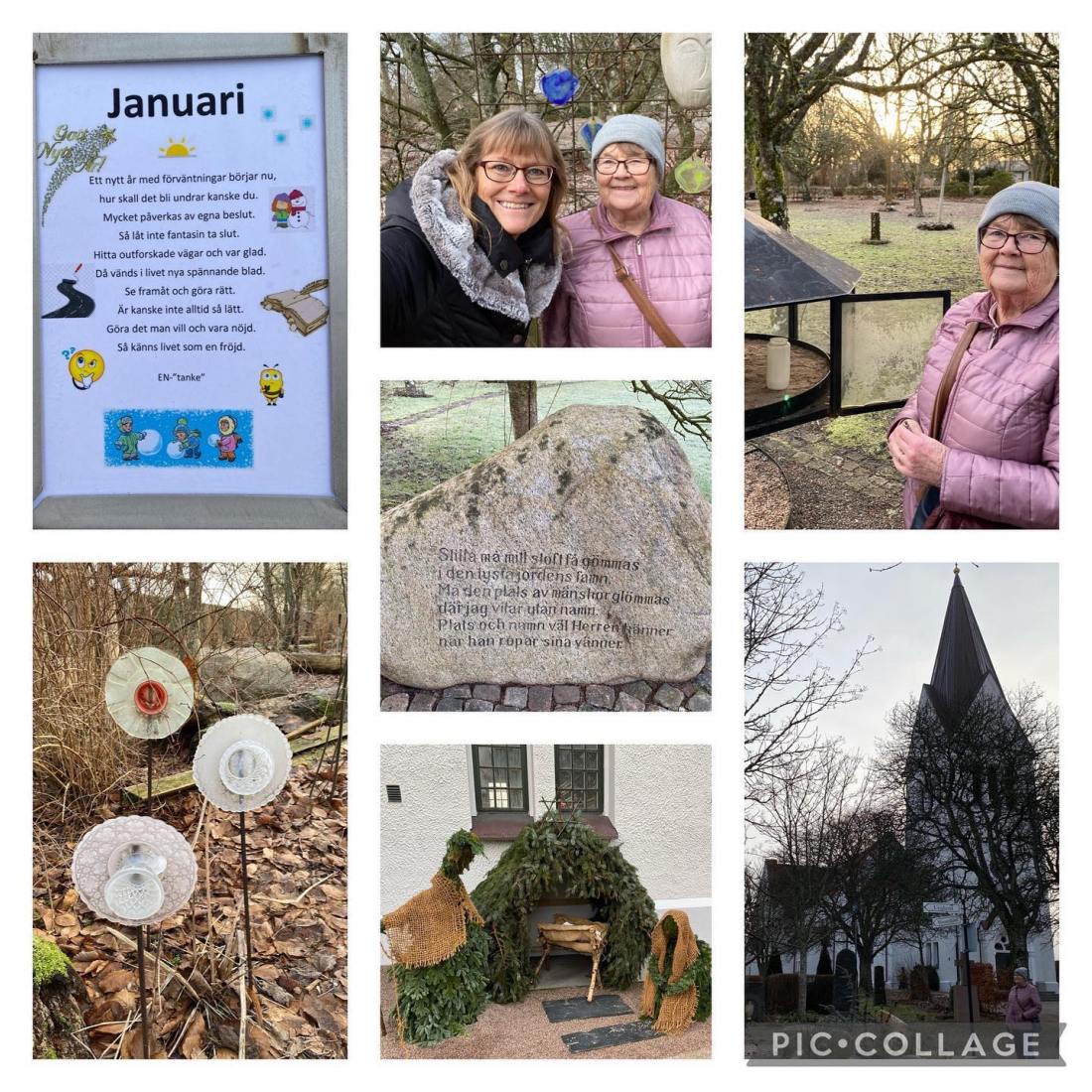 Vi började med en liten vandring på kyrkogården och där fanns denna tavla med fantastiskt budskap för januari månad.