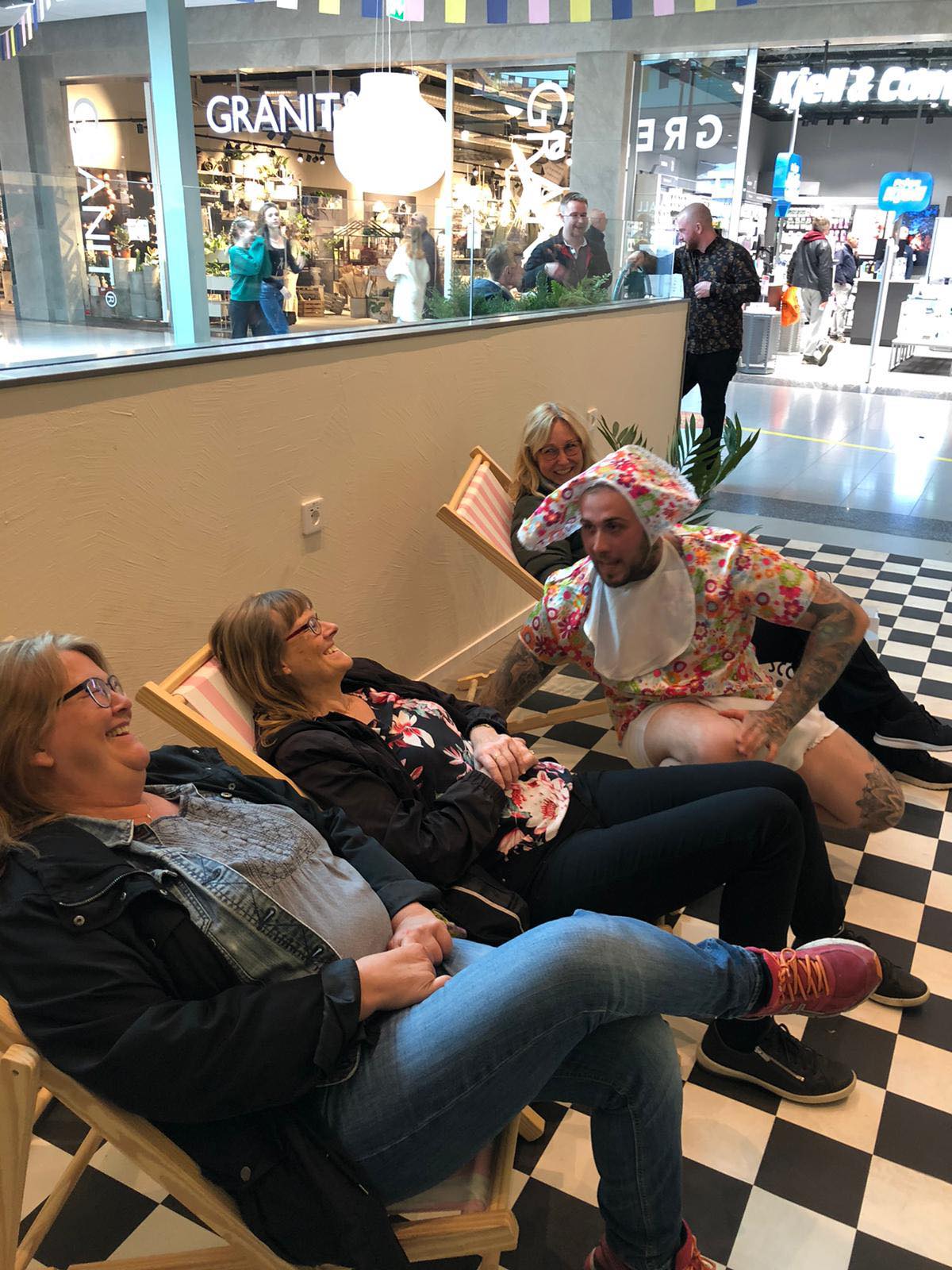 När vi satt och vilade i solstolarna som finns mitt i centret blev vi uppsökta av en gäng som hade svensexa. De bad om tips och goda råd till brudgummen och vi var inte sena att dela med oss av våra bästa tips. Det blev riktigt roligt. Något som var uppmuntrande var att de sa att vi var det trevligaste gänget de mött idag. De tyckte att vi bjöd på oss själva. Det var roligt att höra. Några de mött ville inte ens prata med dem. Ja, vem vet, det kan ju bero på osäkerhet att folk verkar lite tvära.