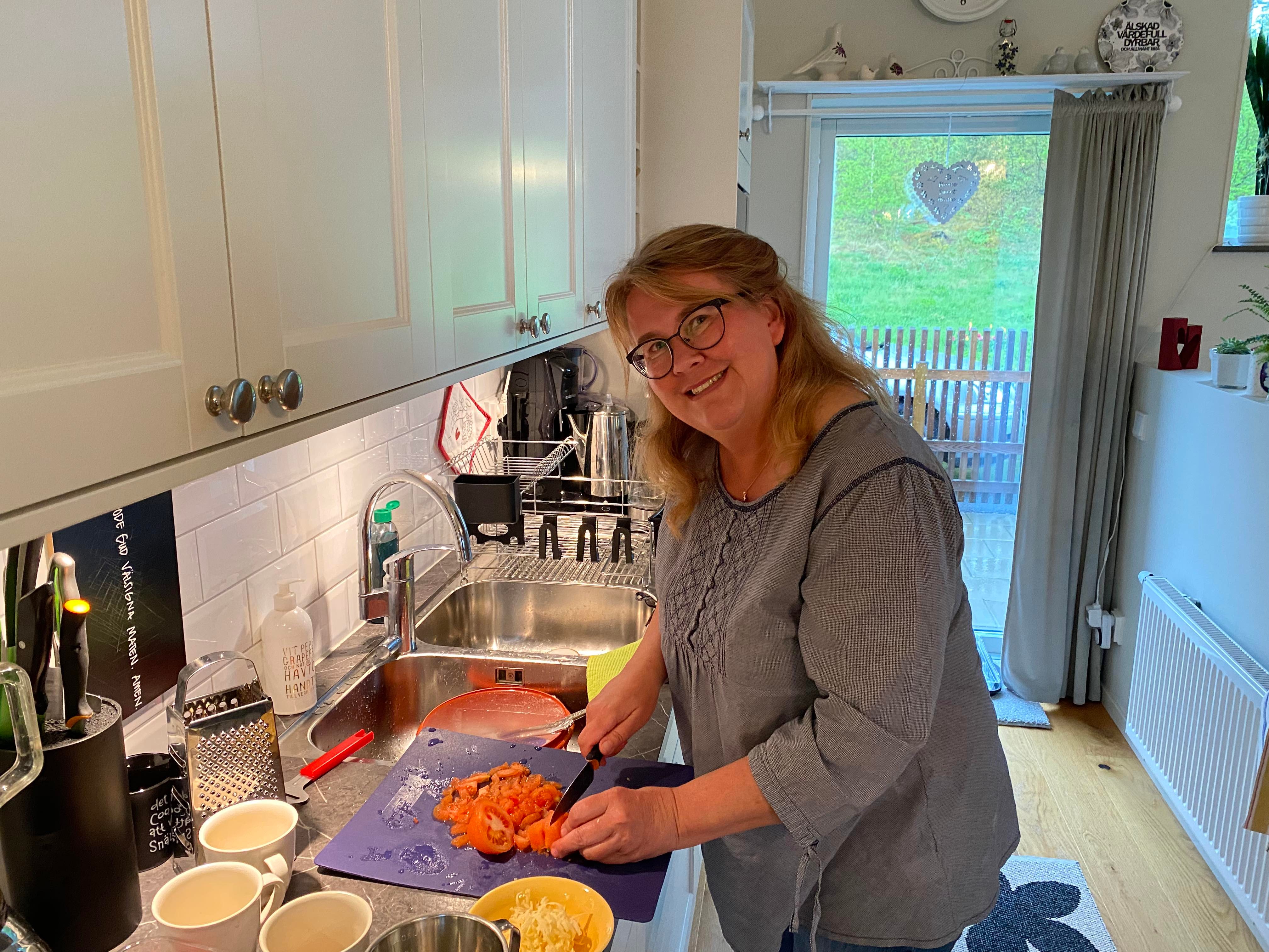 Vi hade sen en trevlig kväll hemma där vi fikade, åt och fortsatte prata. Så skönt med systrar som känner sig som hemma! Här gör Åsa och Iréne fransk tomatpaj. Det är Irénes recept som vi gjorde i Troyes ibland. Själv har jag gjort det många gånger under årens lopp.