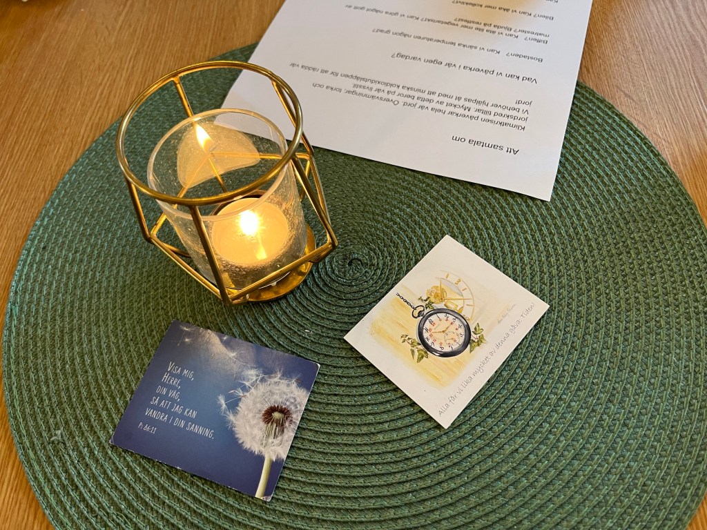 Vi bjöds på kyrkkaffe där vi hade samtalsfrågor att diskutera kring. Gamla vänner och nya bekanta mötte jag. Jag tände ett ljus och bad för en släkting, mig själv och annat som ligger mig varmt om hjärtat. Jag gjorde en böneknut i böneväven. Jag säger Wow och Halleluja på en gång! Mer Jesus till folket!