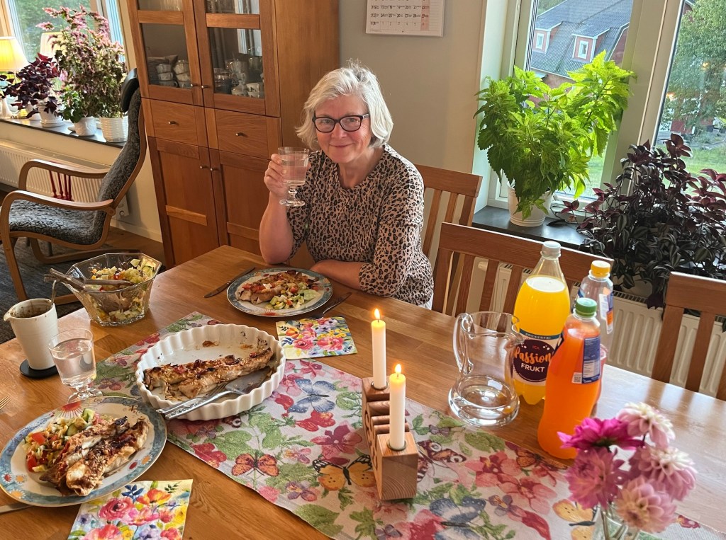 På kvällen åkte vi till Skogsby, utanför Alsterbro. Där hade våra vänner från Nybro och Alsterbro förberett paj, sallad och en massa goda grejer. Vi åt och njöt och hade en trevlig kväll tillsammans. Det är så roligt att träffas.