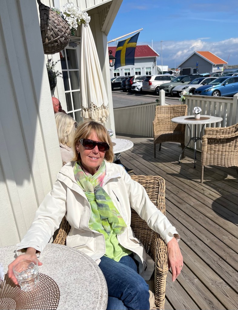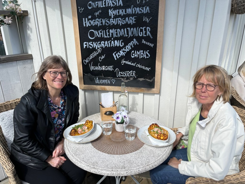Carina och jag har haft en underbar lördag. Vi gick på en shoppingtur i affärerna vid Hönö Klåva. Det var helt underbart att strosa runt i det vackra vädret. Vi åt god fiskgratäng på Hamnkrogen där vi hade första parkett. Solen sken och vi njöt i fulla drag.