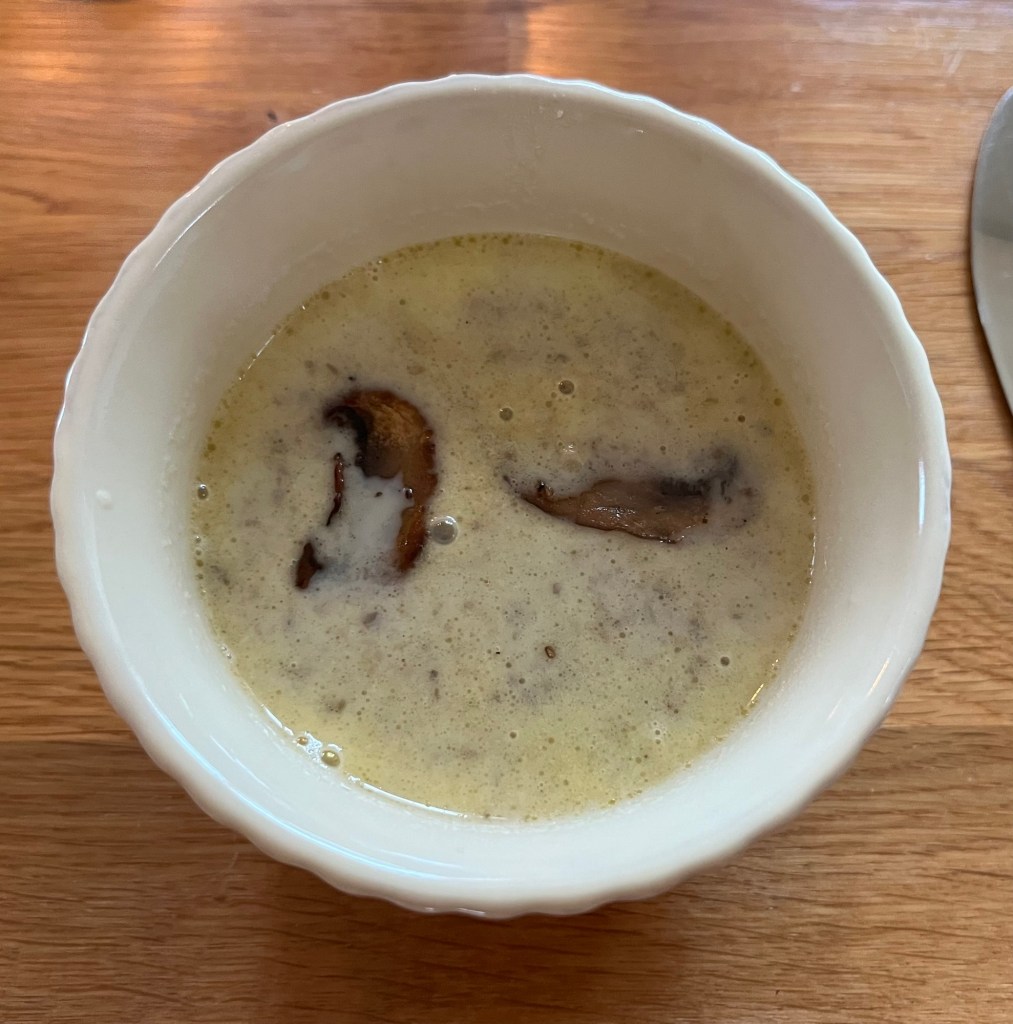 Till förrätt serverades Husets egen svampsoppa och därefter Räkbakelse.