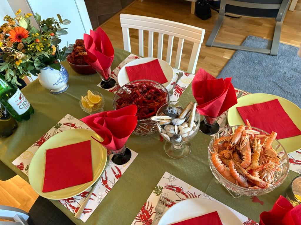 Ikväll har vi haft kräftskive-knytkalas hos kära vännen Monica. Hon hade lagat ett par goda pajer, bakat oststänger, fixat goda sallader och en del småplock. Vi andra bidrog med kräftor och annat. Det blev en riktigt mysig kväll då vi åt och gottade oss. Mina vänner, vad vore jag utan er? Jag älskar dessa kvällar i sällskap med mina härliga tjejkompisar. Det är kvällar jag ser fram emot länge.
