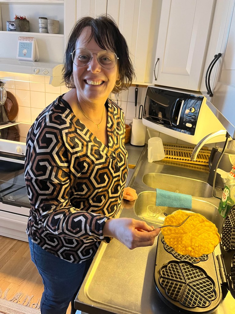 När vi kom hem så bjöd Bodil på våfflor. Det smakade bra. Senare blev det presentöppning.