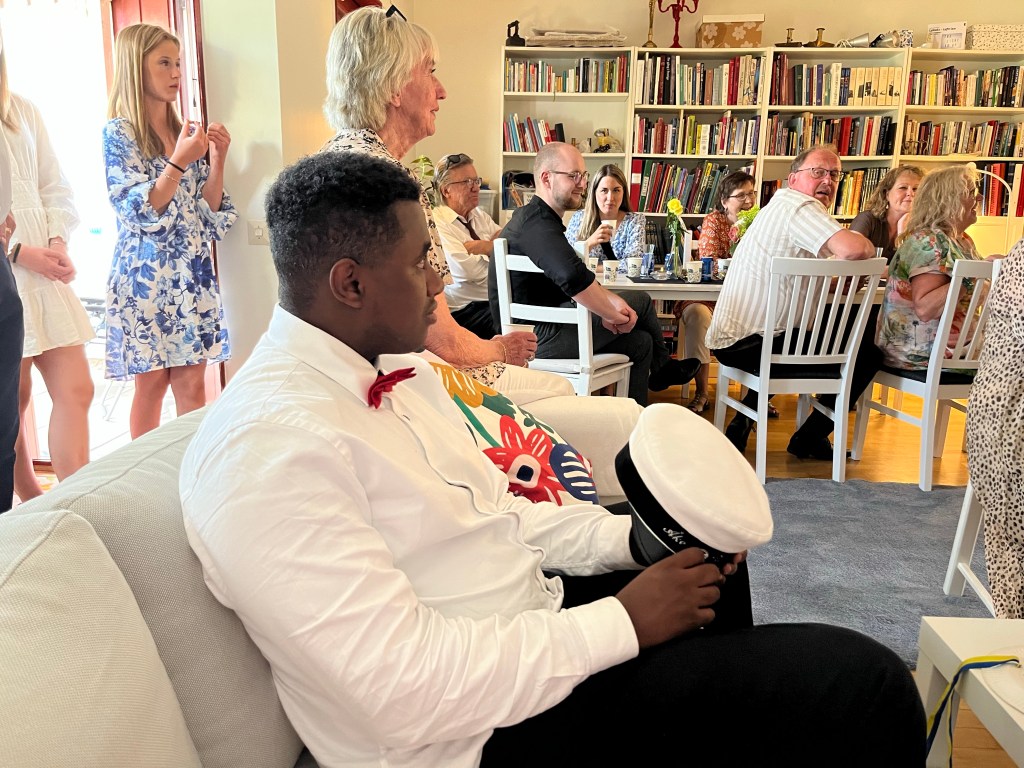 Vi har blivit bjudna på mycket gott. Det blev tal och så sjöng vi studentsången. Vilken stämning!