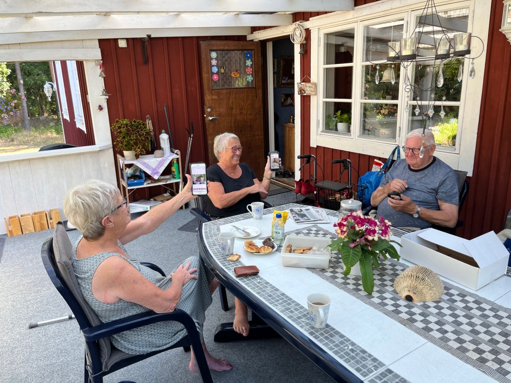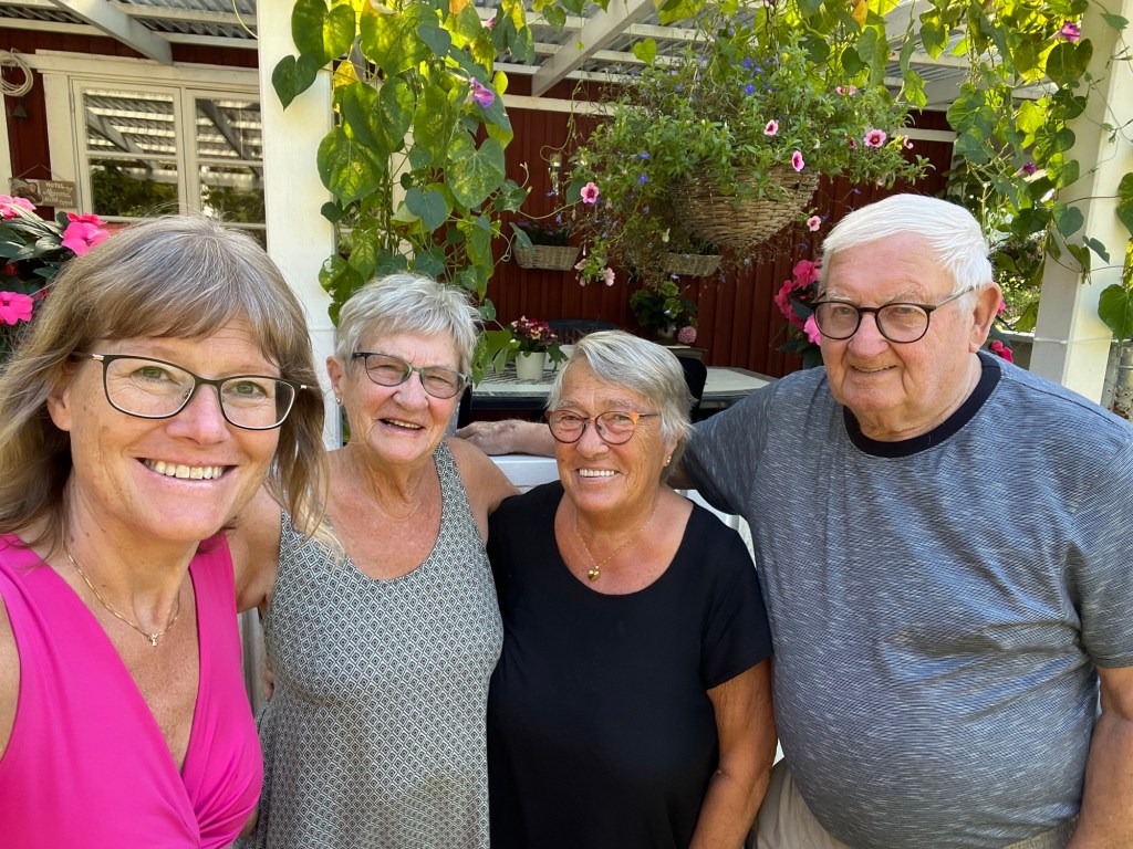 Moster Solveig, moster Barbro, morbror Kalle och jag har haft en jättefin dag i Ingelsryd där Barbro och Kalle bor. Det är verkligen idyllernas idyll. De har det så fint, gulligt och hemtrevligt och det viktigaste av allt…..kärleken och glädjen flödar.