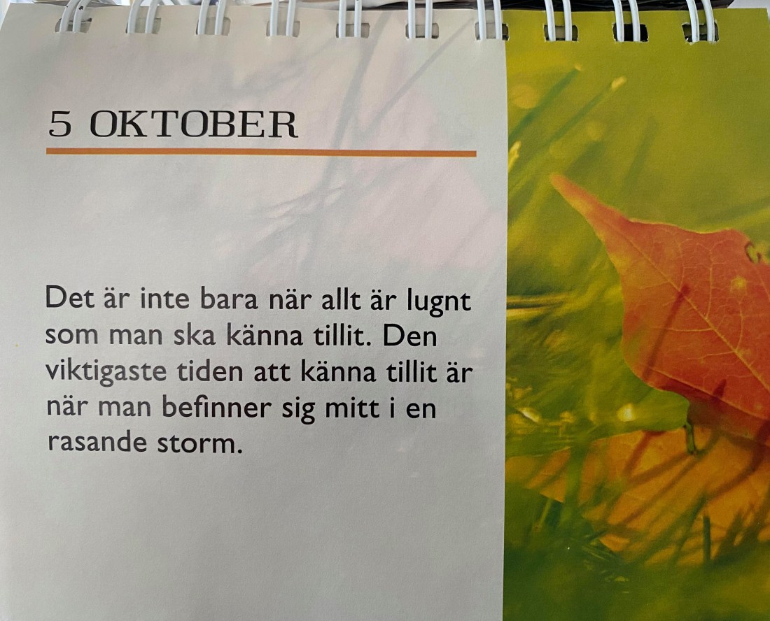 Detta är något jag har förtröstat på otroligt mycket i mitt liv. När det stormar, när det är jobbigt, när jag inte ser något utväg…det är då jag kastar iväg allt till Gud. När jag gjort allt jag kan får Gud sköta resten. Detta är så bra och då kan jag i alla fall se framåt mitt i stormen. Även om det är jobbigt och blåser hemska vindar runt mig får jag lyfta blicken och invänta bättre tider och känna tillit till att Gud kommer med en lösning när tiden är inne. Han har svaret och jag tror han kompenserar oss när vi helt enkelt härdat ut och gått igenom tuffa perioder i livet. Vi kommer ut starkare på andra sidan och blir säkert också mer tacksamma och nöjda över livet vi har.