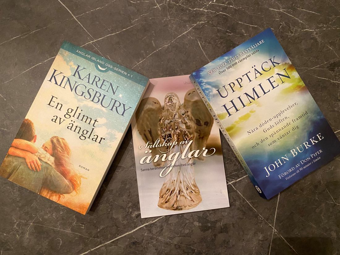 Jag har inte varit på bokrean i år så jag kände att jag verkligen ville ta en titt på böckerna. Jag hade kollat på Nya Musiks hemsida innan men det är inte detsamma som att gå runt i butiken. Jag köpte bl a böckerna: En glimt av änglar av Karen Kingsbury, Sällskap av änglar av Robert Strand och Upptäck himlen av John Burke.