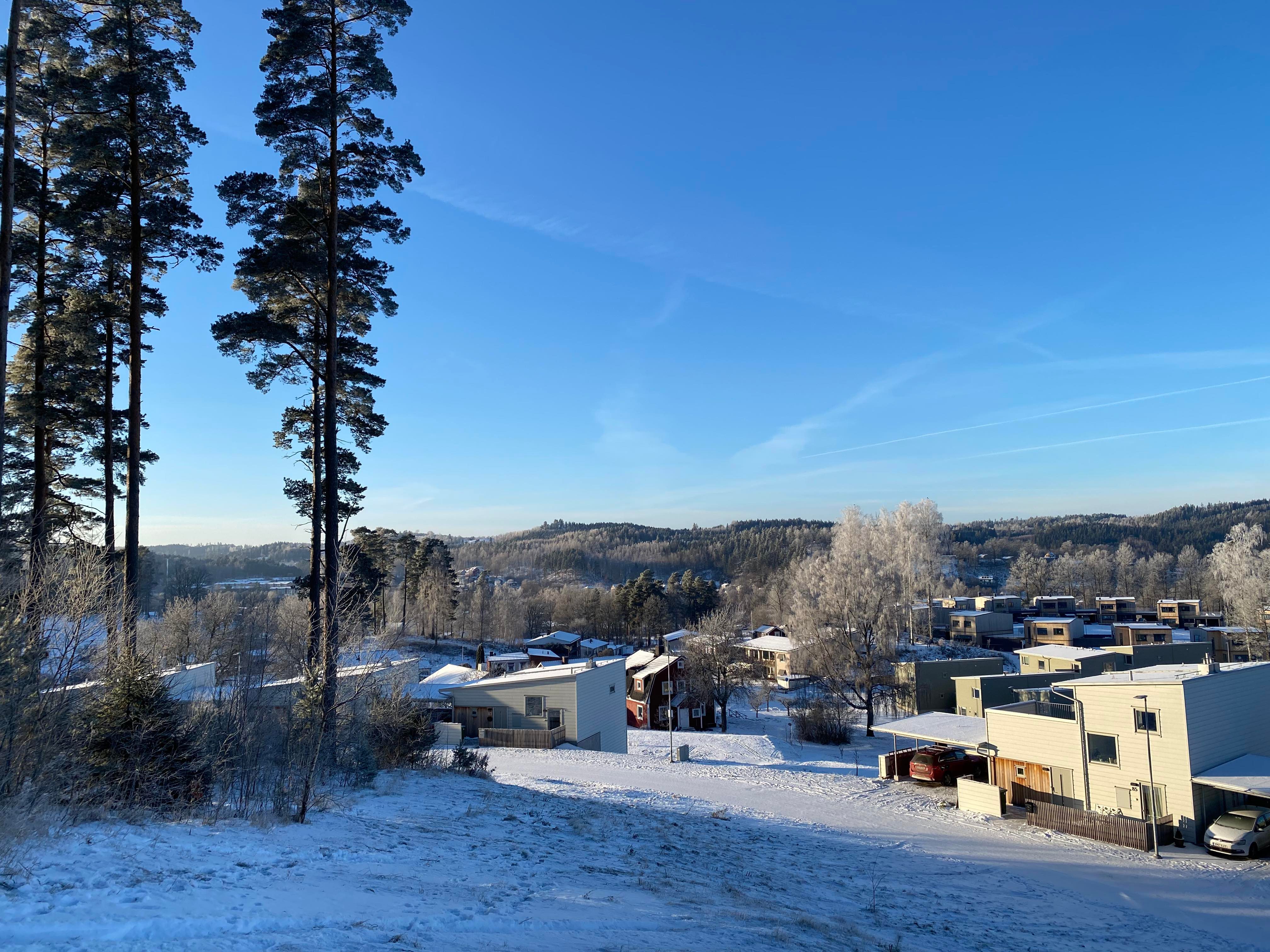 Här ser ni mitt älskade Lisaberg! 💚 💛 Jag har inte varit uppe på toppen sen en massa träd höggs ned i höstas. Nu ser man våra hus bättre. Jag fick en jättefin stund där uppe ikväll. 😊 ☀️ Det var lugnt och rofyllt och jag gick runt och bara njöt av livet och friden.