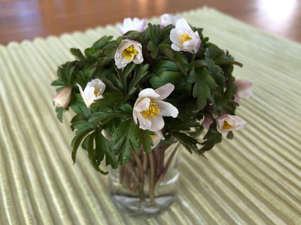 Innan jag gick hem plockade jag vårens första bukett med vitsippor som står så fina här hemma nu. Ljuvligt!