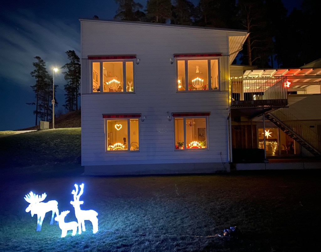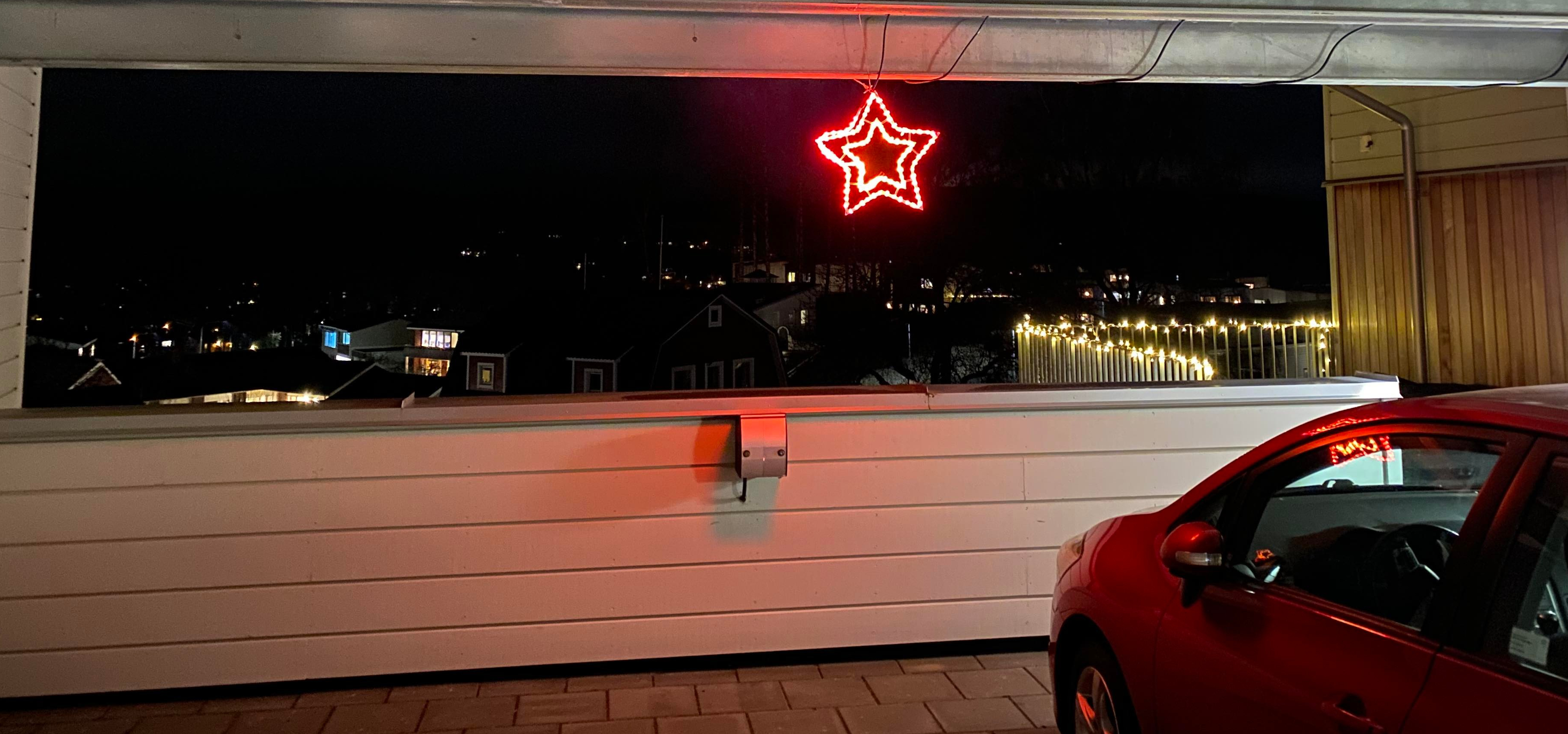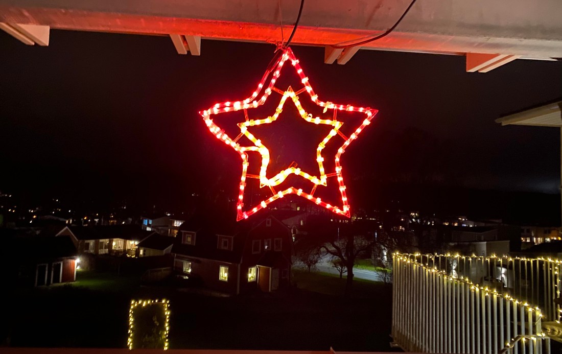 Jag har nu satt upp all utebelysning som ska lysa upp i vintermörkret. I år blir det extra mysigt då jag har satt upp en stjärna i carporten. Denna stjärna hade mamma hemma i Slättingebygd flera jular. Den hängde där så vackert och stämningsfullt vid verandan och nu känns det extra fint för mig att få ha den här i mitt hem på Tallkullen. Den sprider ljus, värme och vackra minnen. Jag har så mycket att glädja mig över. 🙂