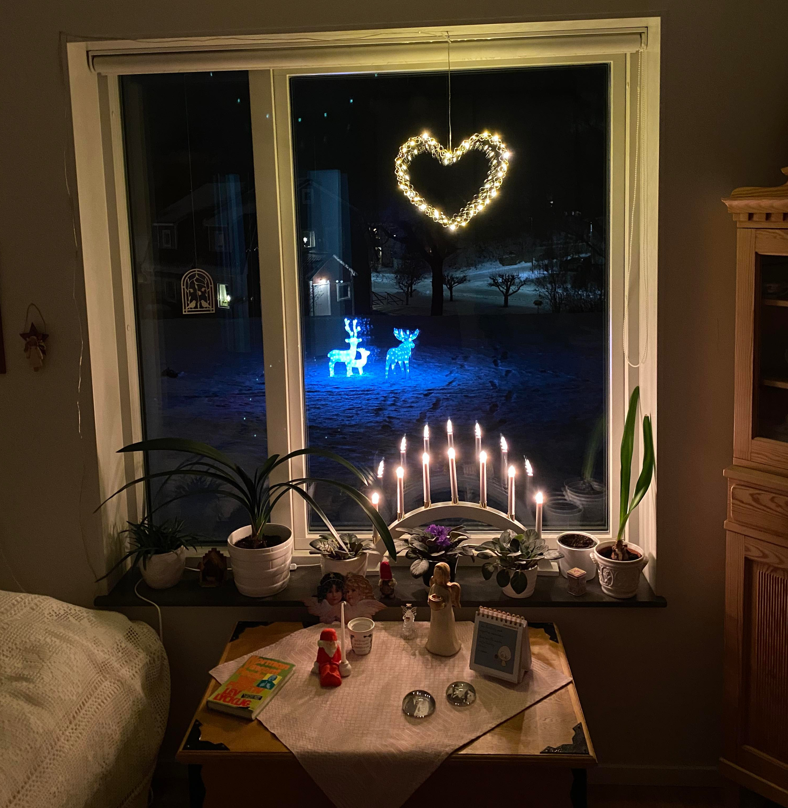 Ikväll låg jag på soffan någon timma innan läggdags och bara njöt av all vacker belysning. Jag behåller julpynt och belysning lite till. Jag njuter så otroligt av det. Jag släckte ner i huset och hade bara adventsstjärnor och adventsljusstakar tända. Oh, vad det är härligt! Jag njuter av friden.