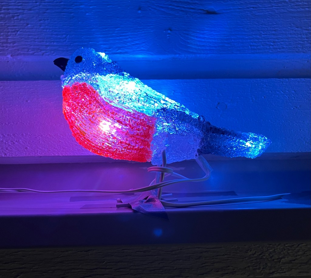 Nu har dessa små raringar fått sin rätta plats i mitt hem. Jag fick dem i helgen av min bror Hans med familj och jag älskade dessa små domherrar direkt. De fick först pryda köksön där de stod och lyste så fint. Idag har jag hittat en bra plats för dem. De passar fint att ha vid ytterdörren. Där vaktar de både mig och huset i vintertid och säger ”Välkommen hem” när jag varit borta.