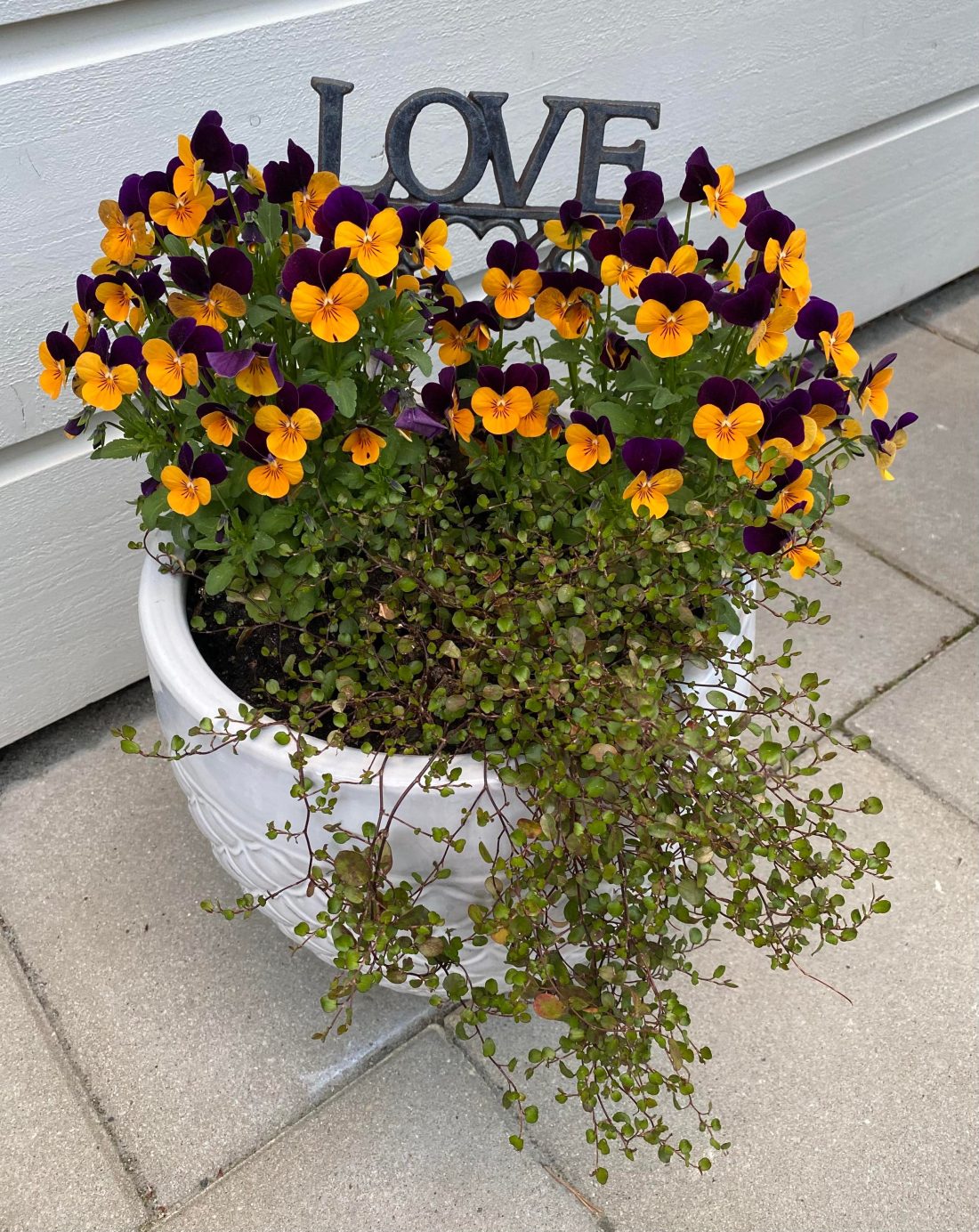 Växterna vid entrén har vuxit till sig rätt så bra den senaste tiden. När jag planterade dem hade inte värmen riktigt kommit igång så någon växt frös faktiskt. Jag försöker få den att uppstå igen i solens varma sken. Jag får se om jag lyckas. Det var en silvernjurvinda som jag hade planterat tillsammans med några andra penséer. Penséerna klarade sig bra efter som de är tåliga men silvernjurvindan var mera känslig för kyla. Man lär sig av misstagen.