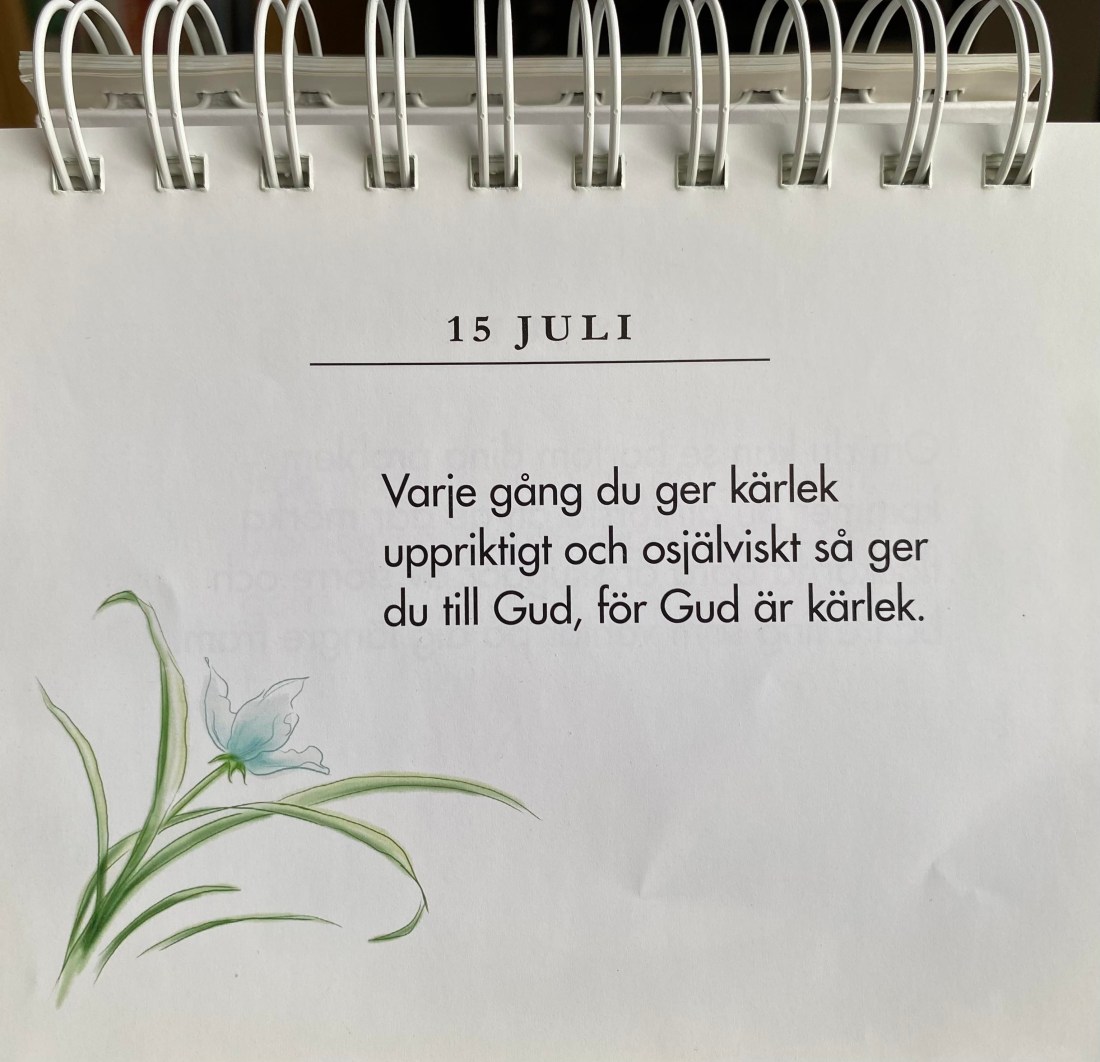 Dagens budskap i min kalender Tankar om Livet lyder som följer: Guds kärlek är den mäktigaste kraften i världen.