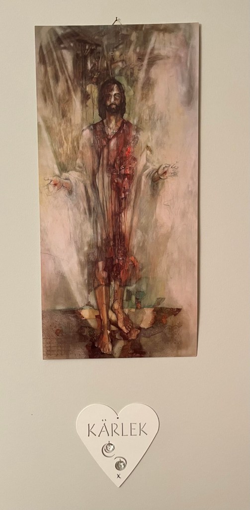 Jag tycker hjärtat passar fint nedanför planschen med Jesus. Jesus har gett sitt liv för mig på korset och det var den största kärlekshandling som har utförts.