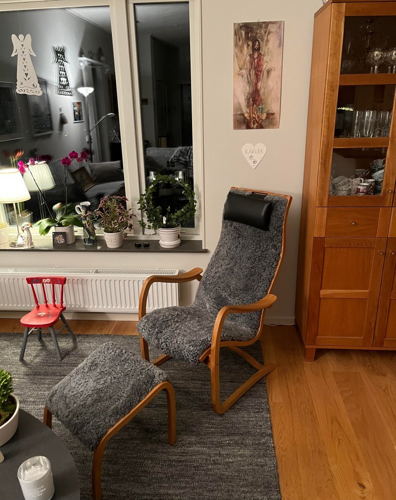 Jag köpte en ny fåtölj i söndags och jag är mycket nöjd med mitt inköp. Nu vet jag också hur jag vill ha den möblerad. Jag har suttit i den under dessa dagar och känt in rummet. Jag fick flytta hela möblemanget lite grand för att fotpallen skulle få ordentligt med plats. Nu känns det bra.