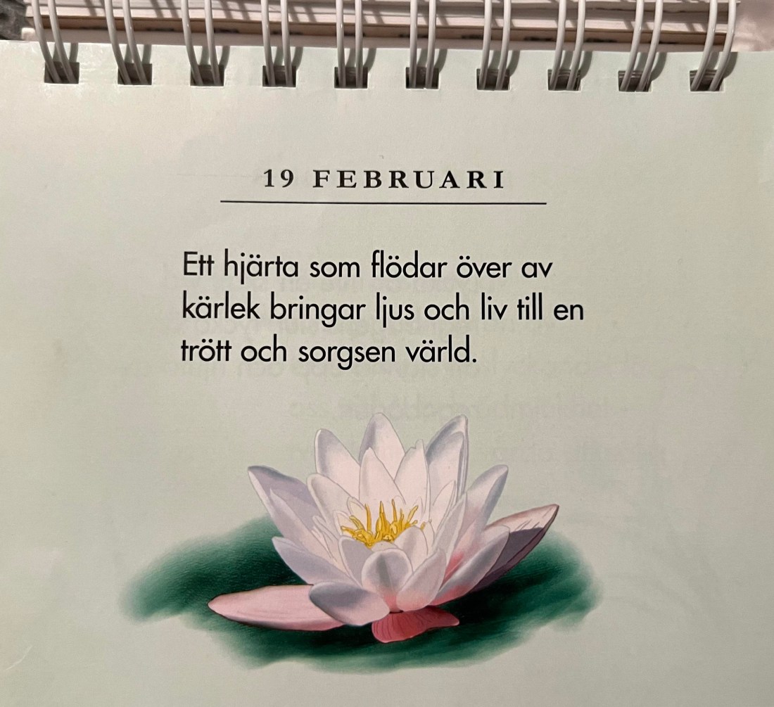 Min kalender Tankar om Livet levererar återigen en vacker text. Den lyder som följer: