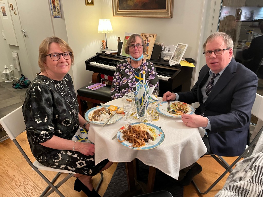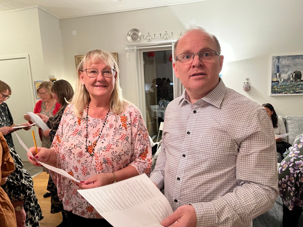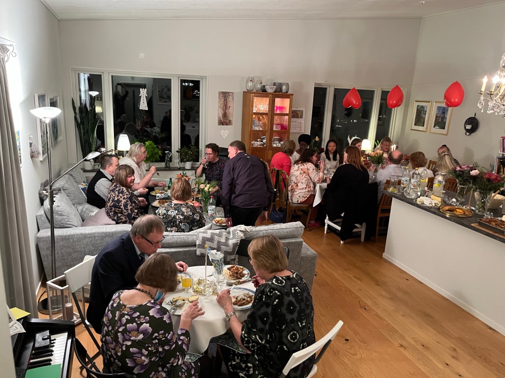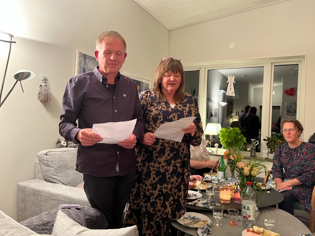 Rätt som det var medan vi åt började mina vänner att hålla tal. De var så snälla, roliga och kärleksfulla. Bengt och Mia läser något trevligt och uppmuntrande de diktat.