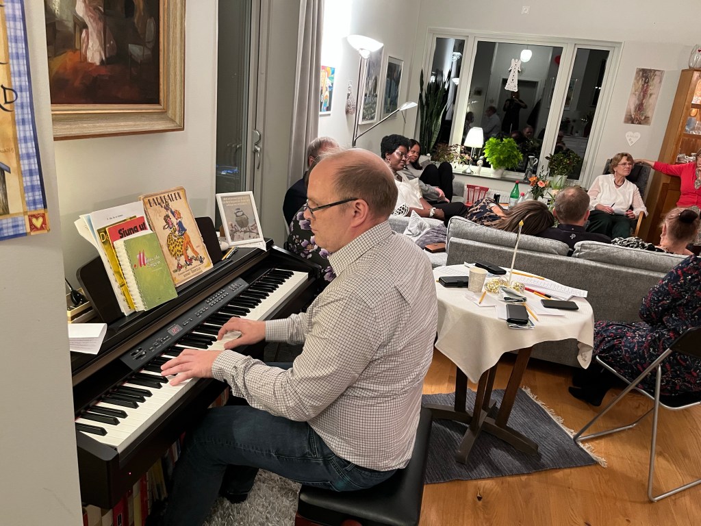 Mats spelade ett par låtar för oss bl a ”Vilken värld det ska bli”. Underbart!
