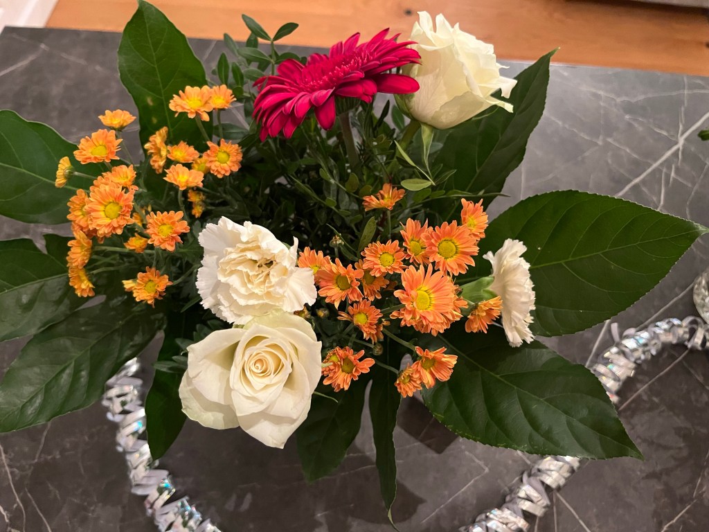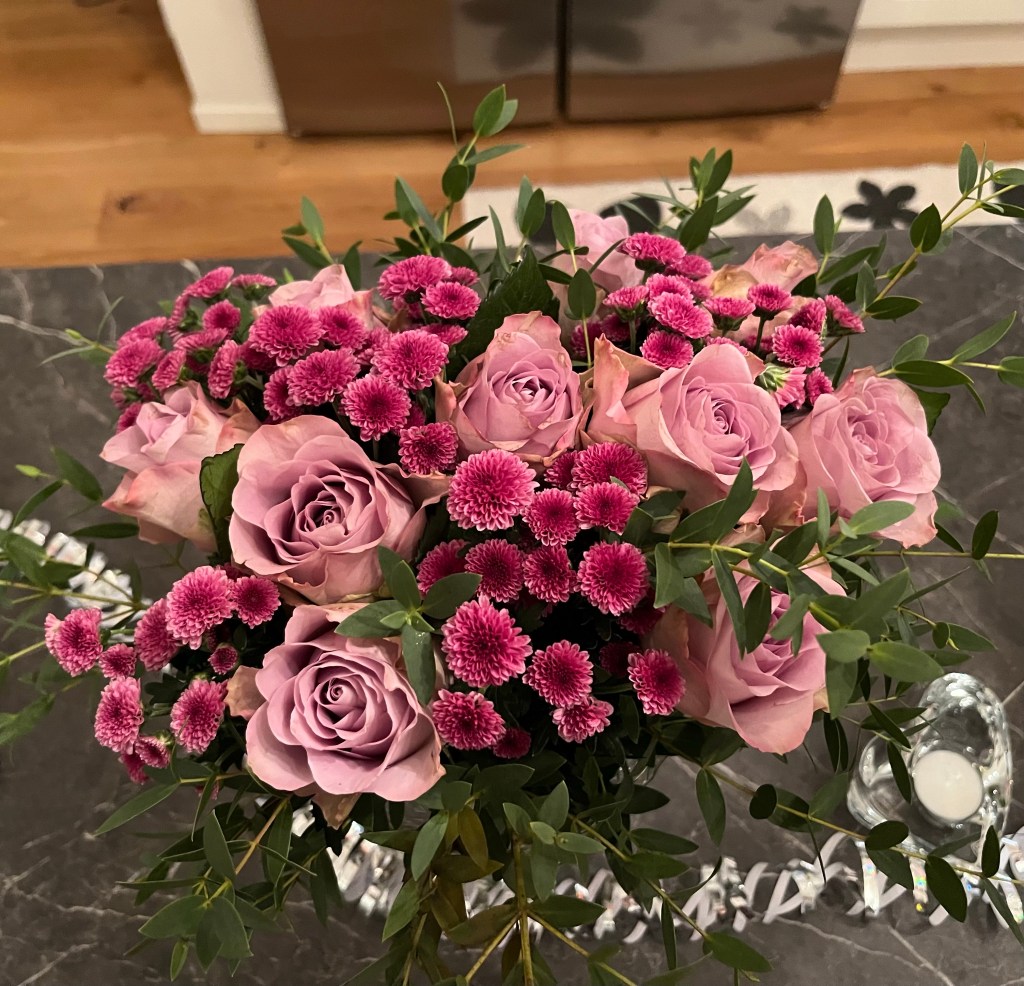 Buketten till vänster fick jag av vännen Ing-Marie och buketten till höger av vännerna Ann-Charlotte, Sara och Mats.