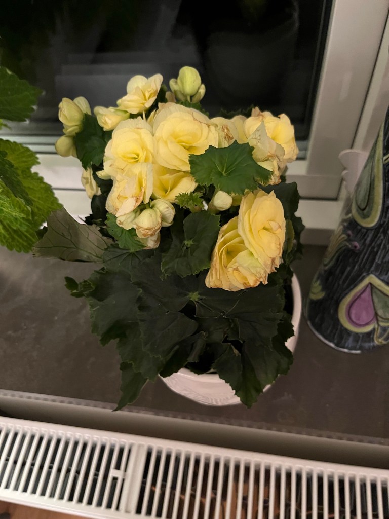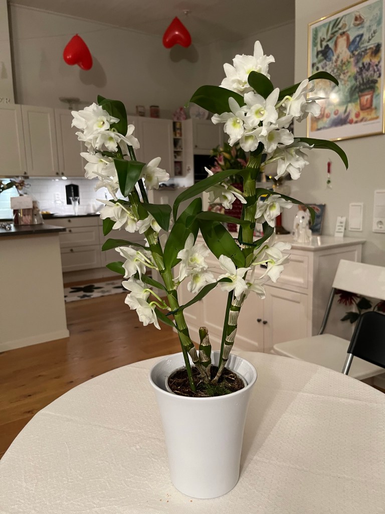Dendrobium till vänster fick jag av min kusin Pelle med familj och den gula begonian av vännen Eva.