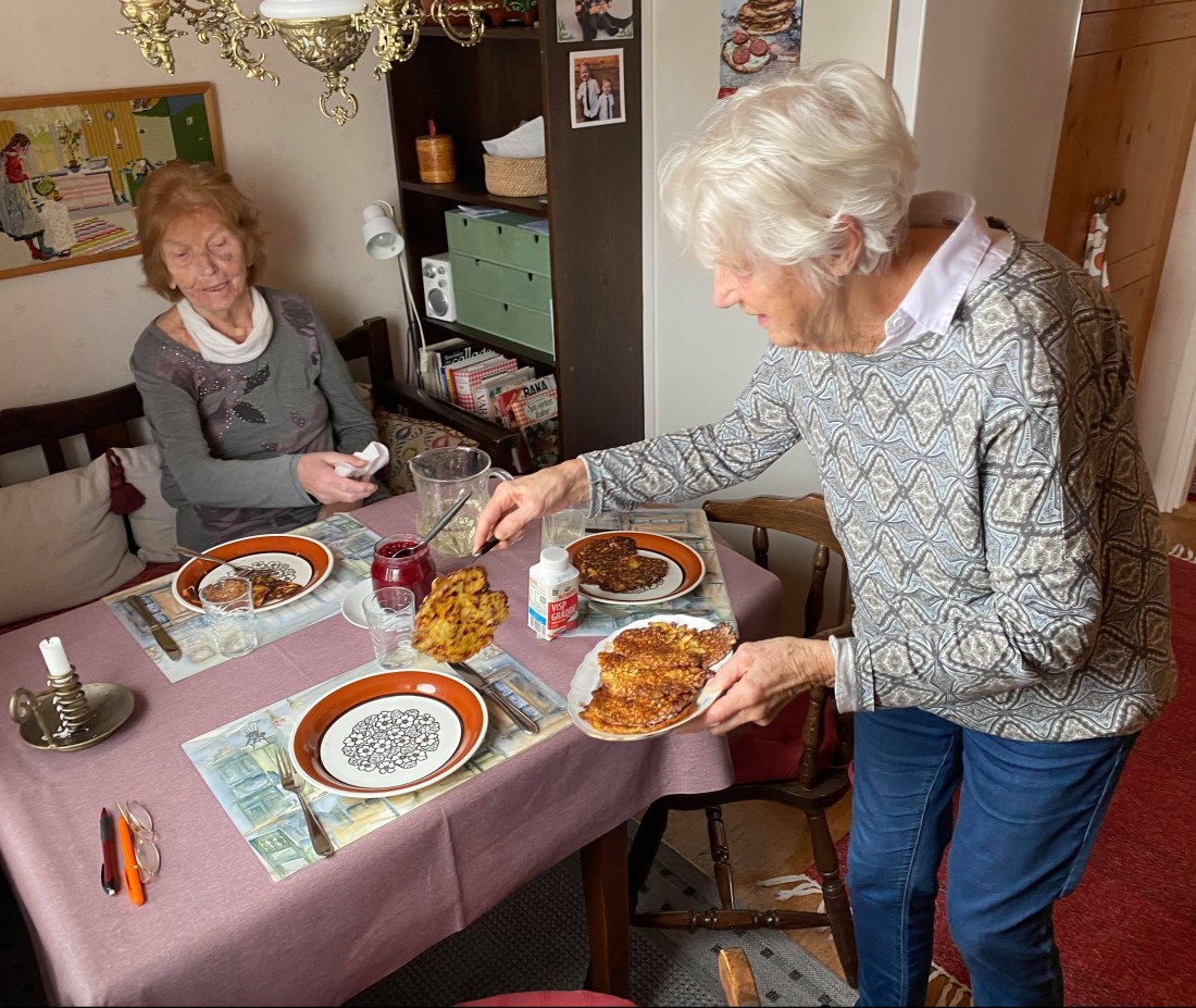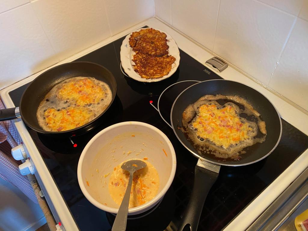 Jag åkte till Nybro igår kväll och jobbar härifrån denna vecka. På kvällarna fixar och grejar jag i mammas lägenhet. Här finns massor att göra inför att vi ska tömma lägenheten till helgen. Mammas grannar är snälla, omtänksamma och trevliga. Idag bjöd Sigbritt på rotfruktspannkakor till lunch. De var jättegoda. Det är så skönt med ett avbrott med god mat och en trevlig pratstund under arbetsdagen.