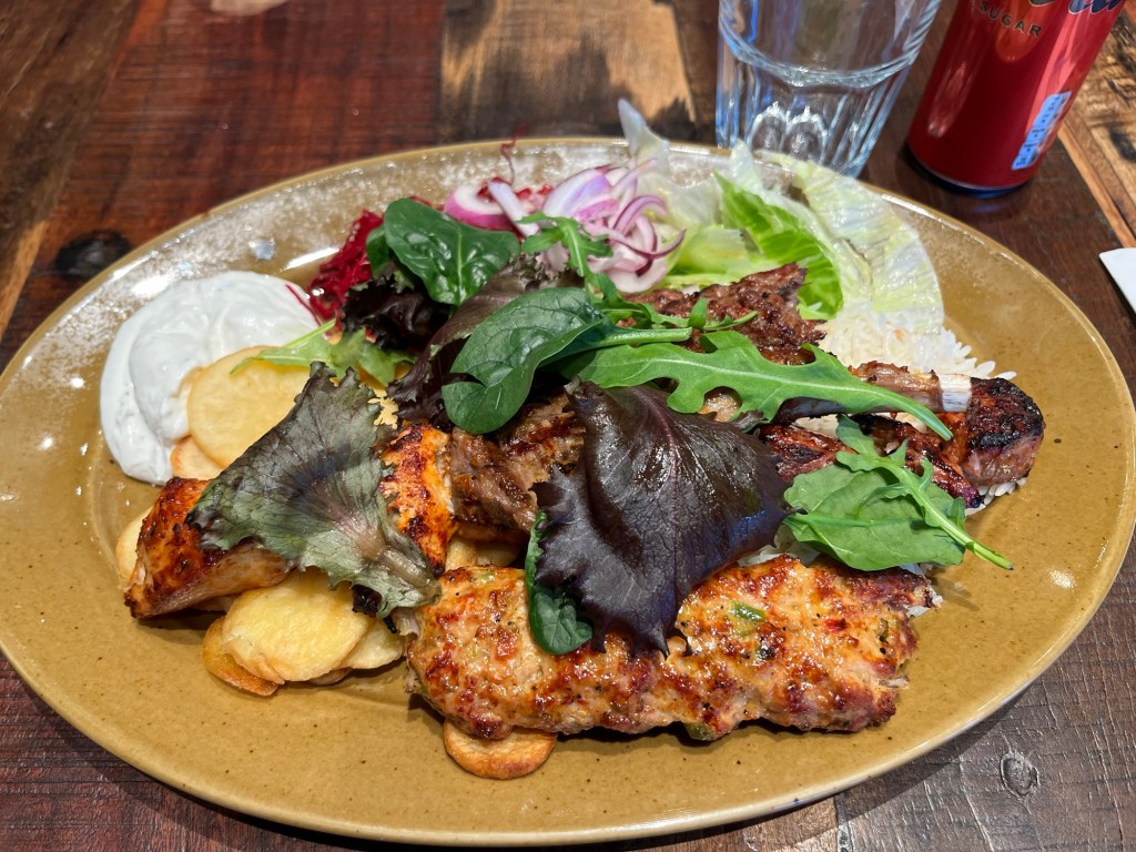 Idag har jag varit ute på kundbesök stora delar av dagen. Jag kom till en ny kund kl 11.00 och vi satt och pratade en stund. Han ville servera mig lunch och det tackade jag ja till. Han kom med denna ljuvliga tallrik och så fanns det sallad m m att hämta också. Oj, vad jag njöt! Vilken välsignelse och så glad jag blev! Det var jättegott. Han ville också annonsera på våra sajter så det var bara positivt allting.