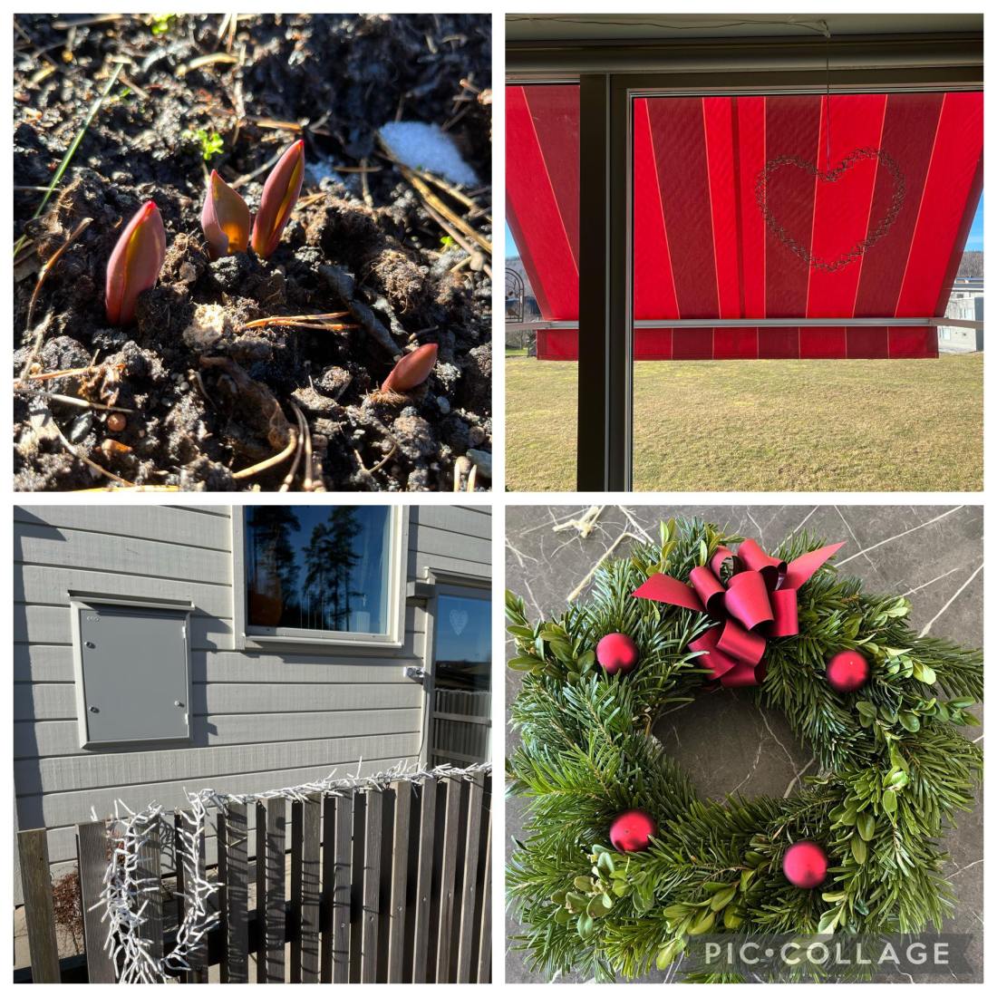 Jag tycker fortfarande att det är mörkt på kvällarna så jag har haft julbelysningen kvar på ett ställe men idag tog jag in den. Dörrkransen tog jag också bort. Visserligen är det fint att ha en krans men den var dekorerad med röda kulor och band och jag känner att julen är förbi nu.