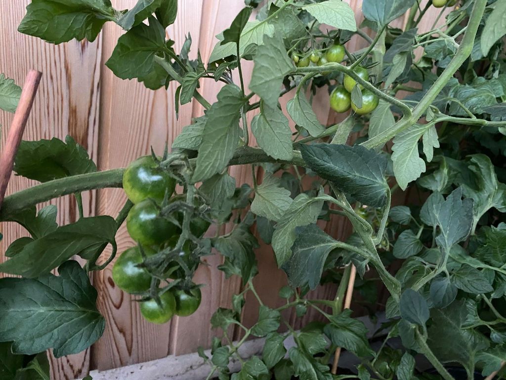 De blommade sent och vissa blommar för fullt fortfarande. Nu väntar jag spänt på att se om mina tomater hinner mogna i septembersolen och om det blir små tomater av alla blommor. Detta är kul. Jag kanske får hitta recept där man använder gröna tomater men jag hoppas förstås på att många ska hinna mogna helt.
