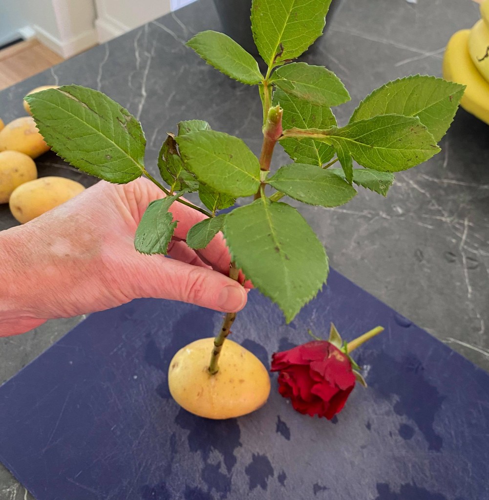 Jag fick en idé när jag sökte efter info om rosodling. Det dök upp en film som visade hur man kan odla rosor i potatis. Jag blev eld och lågor och ville testa detta.