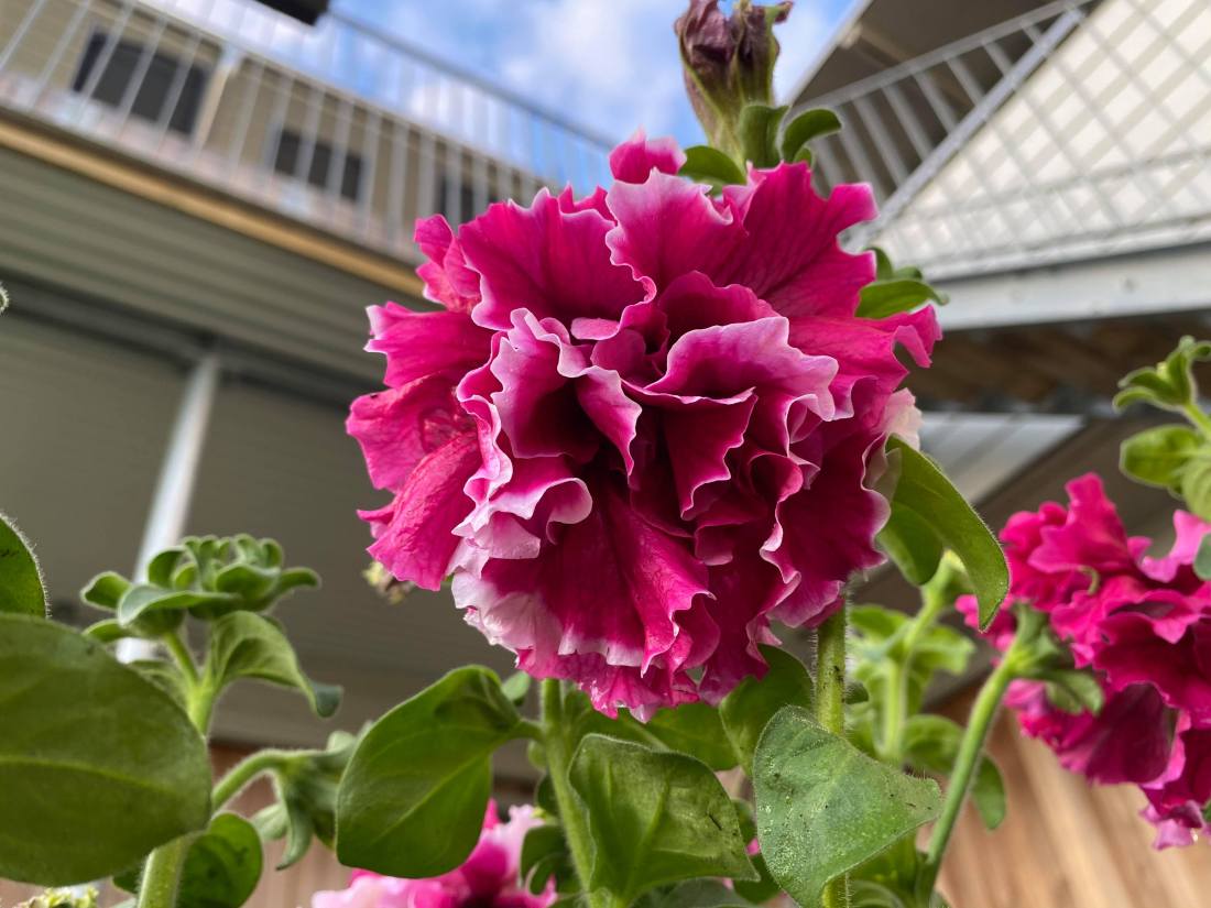 Idag har jag varit på kundbesök i Vetlanda. Jag parkerade på Stortorget och fick se att torghandeln var i full gång. Jag passade på att gå dit. Jag fick se en helt underbar blomma som jag inte kände igen. När jag frågade fick jag veta att det är en dubbel petunia. De kostade bara 20 kr styck så jag köpte fem stycken.