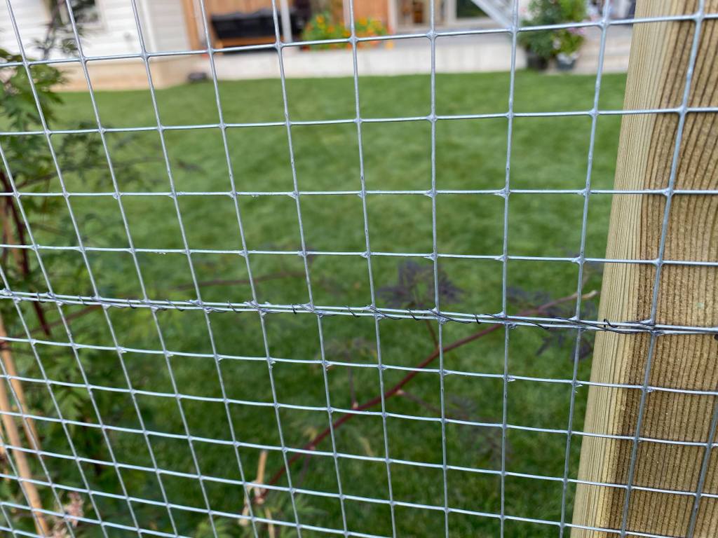 Med hjälp av märlor satte vi fast de båda armeringsnäten i reglarna och sen fäste jag ihop de båda näten med ståltråd. Det blev bra.