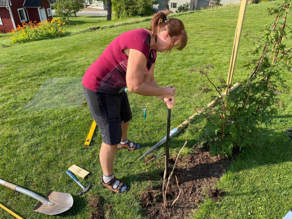 Sen gjorde Kicki hål i marken där vi skulle sätta ner jordankaret.