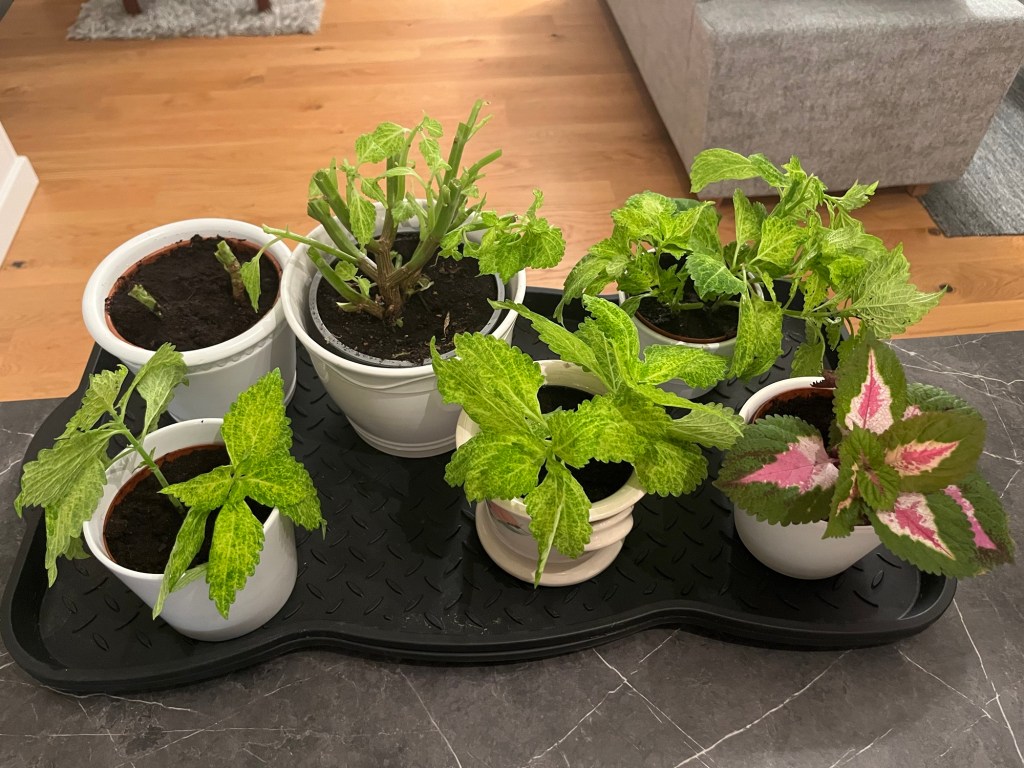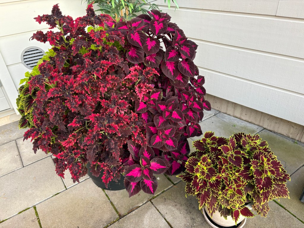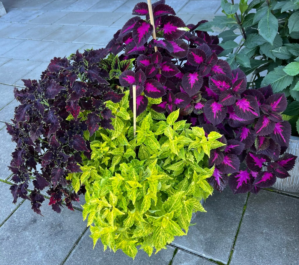 Palettblad är fantastiska växter. 💚🩷 Den 6 juni planterade jag några sticklingar. (Se bild längst ner.) Idag har de vuxit sig stora och färgstarka. Det är roligt att mötas av detta när jag gör min lilla trädgårdsrunda på morgonen. 😃