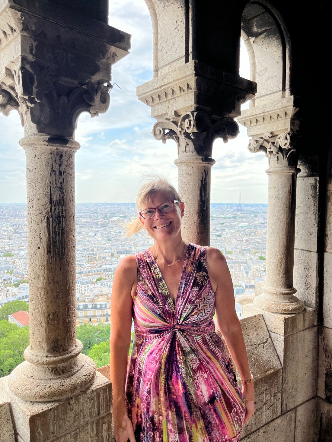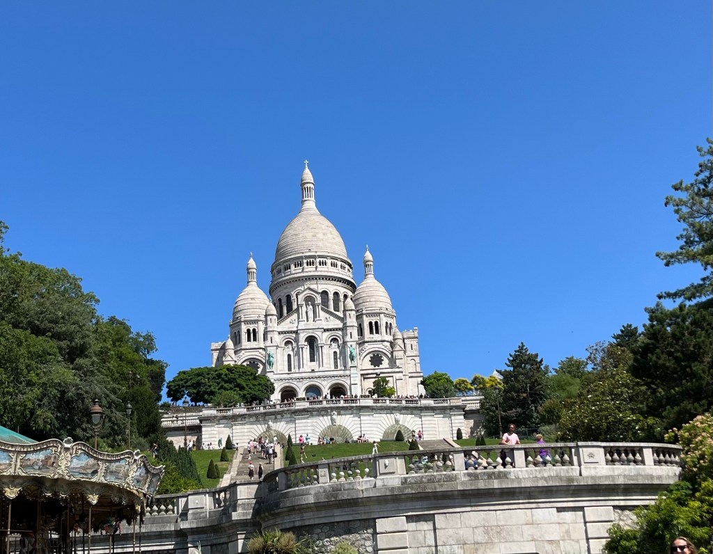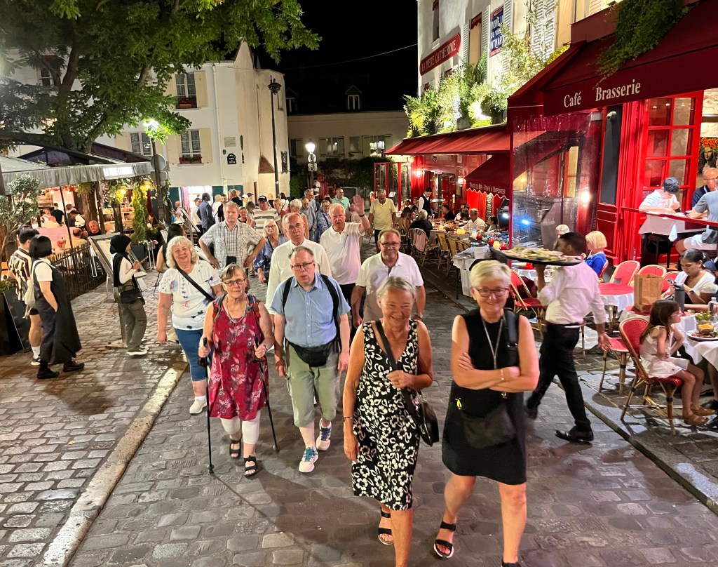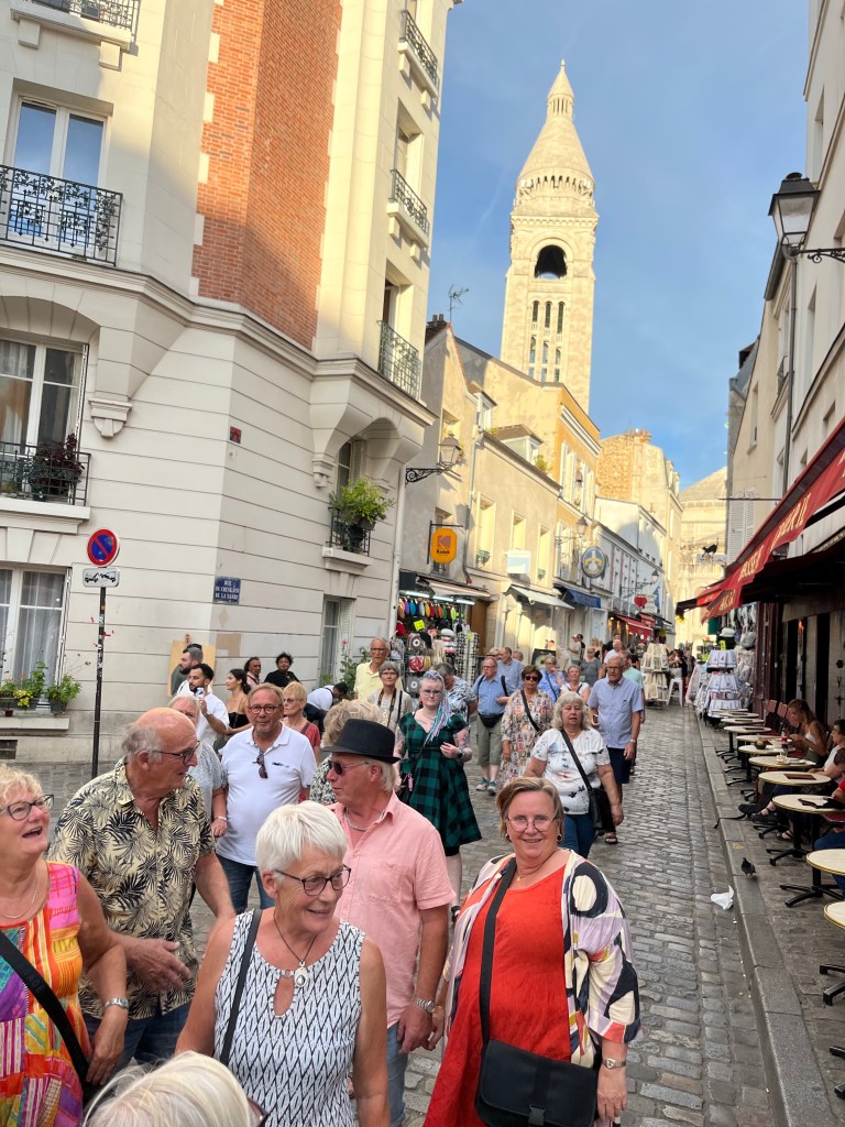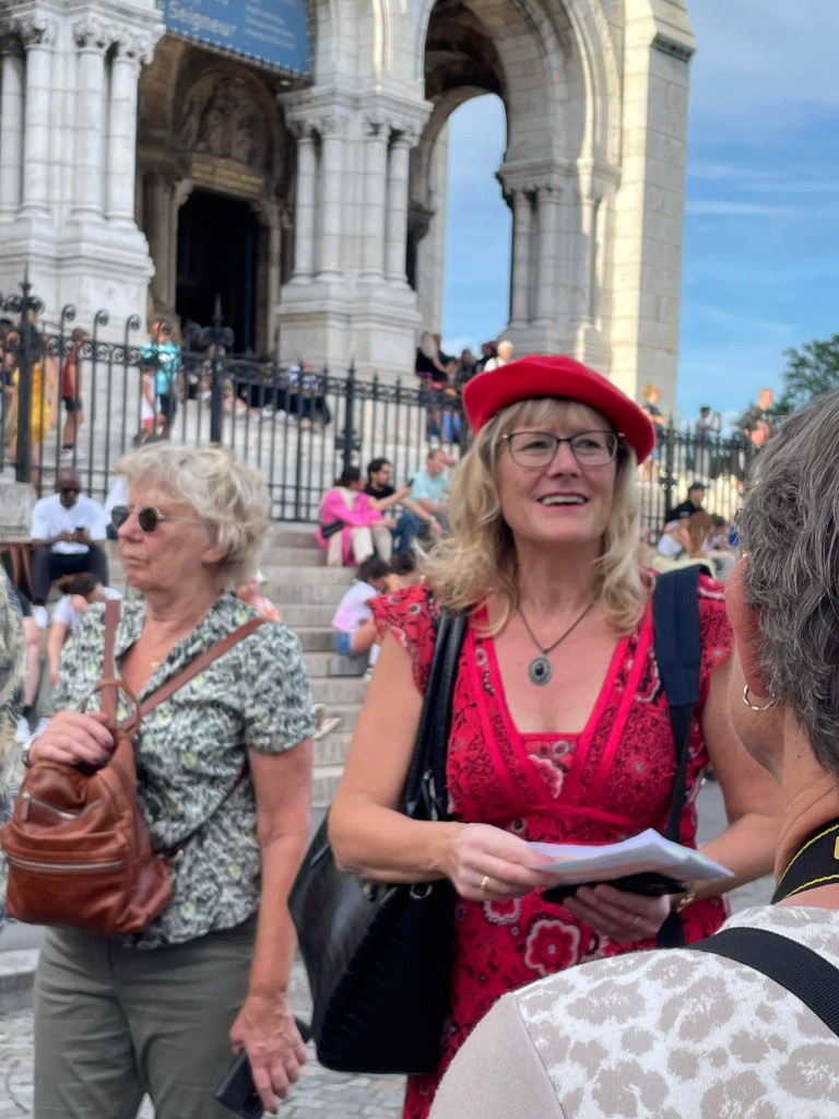På kvällen var det dags för ”En glad kväll i Montmartre”. Vi tog oss upp till Sacré-Cœur där jag berättade lite om kyrkan. Jag fick denna bild av en resenär och tycker den är kul. Jag brukar ha basker på mig när vi åker upp till Montmartre. Jag fick höra av resenärerna att det var toppen för jag syntes så bra med min röda basker.
