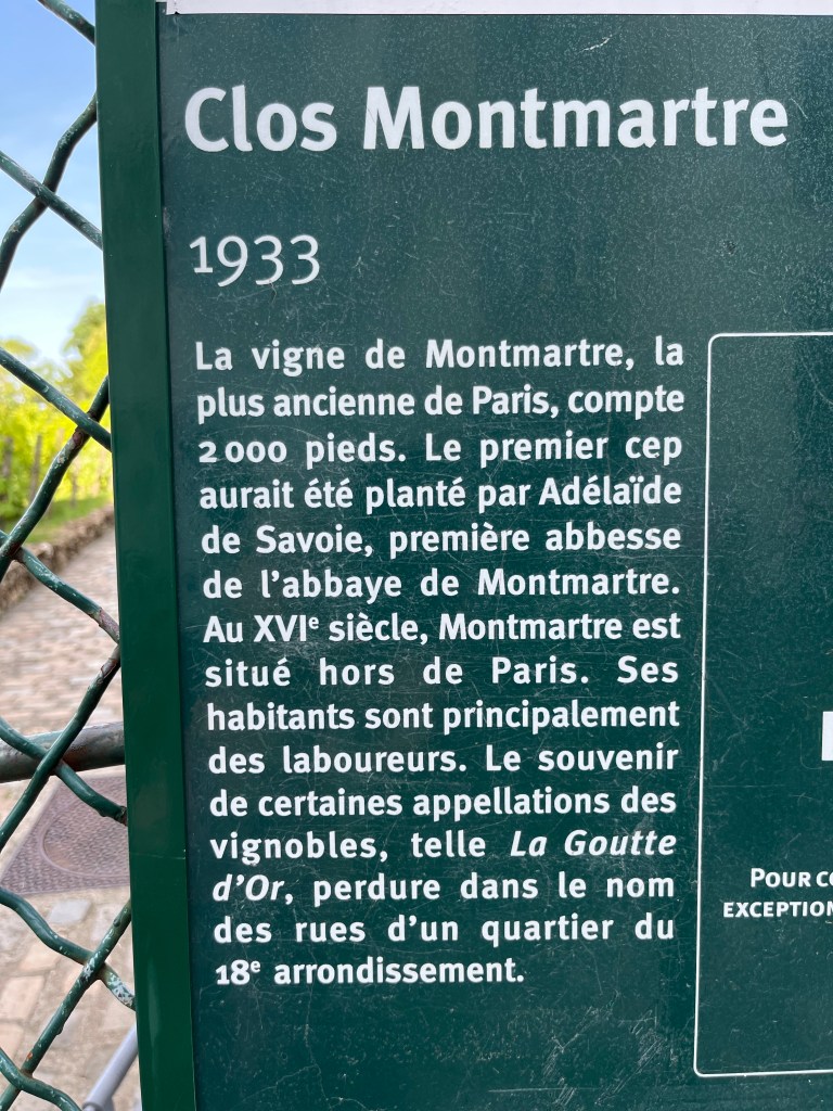 I Montmartre finns en vingård. Den anlades 1933 på norrsluttningen av kullen där Montmartre är beläget. Jag stannade till och tog några foton.