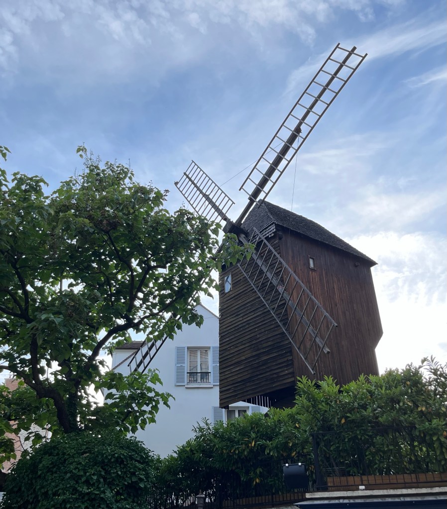 Den äkta gamla väderkvarnen Le Radet byggdes 1717. Strax nedanför ligger restaurangen Le Moulin de la Galette. Le Radet har också en systerkvarn som ligger strax intill och heter Blute-Fin. Man kan skönja den på den tredje bilden nedan.