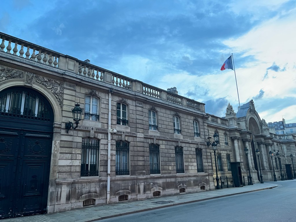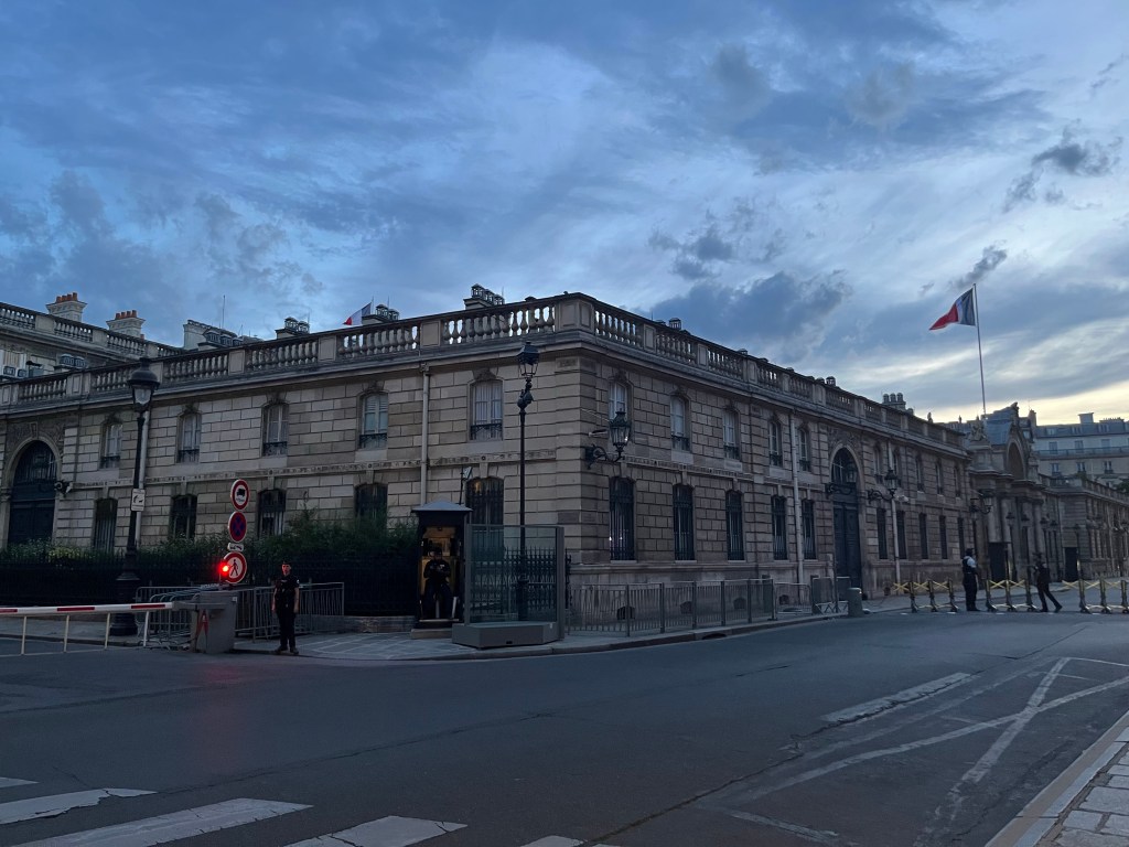 Klockan var 21.30 men jag ville inte gå hem och sova. Det är ju min sista kväll i Paris. Jag bestämde mig för att promenera till Élyséepalatset som är president Emmanuel Macrons boplats. Jag ville titta till honom helt enkelt. Jag njöt av den underbara ljumma sommarkvällen i mitt Paris där jag med långa steg tågade iväg mot Élyséepalatset.