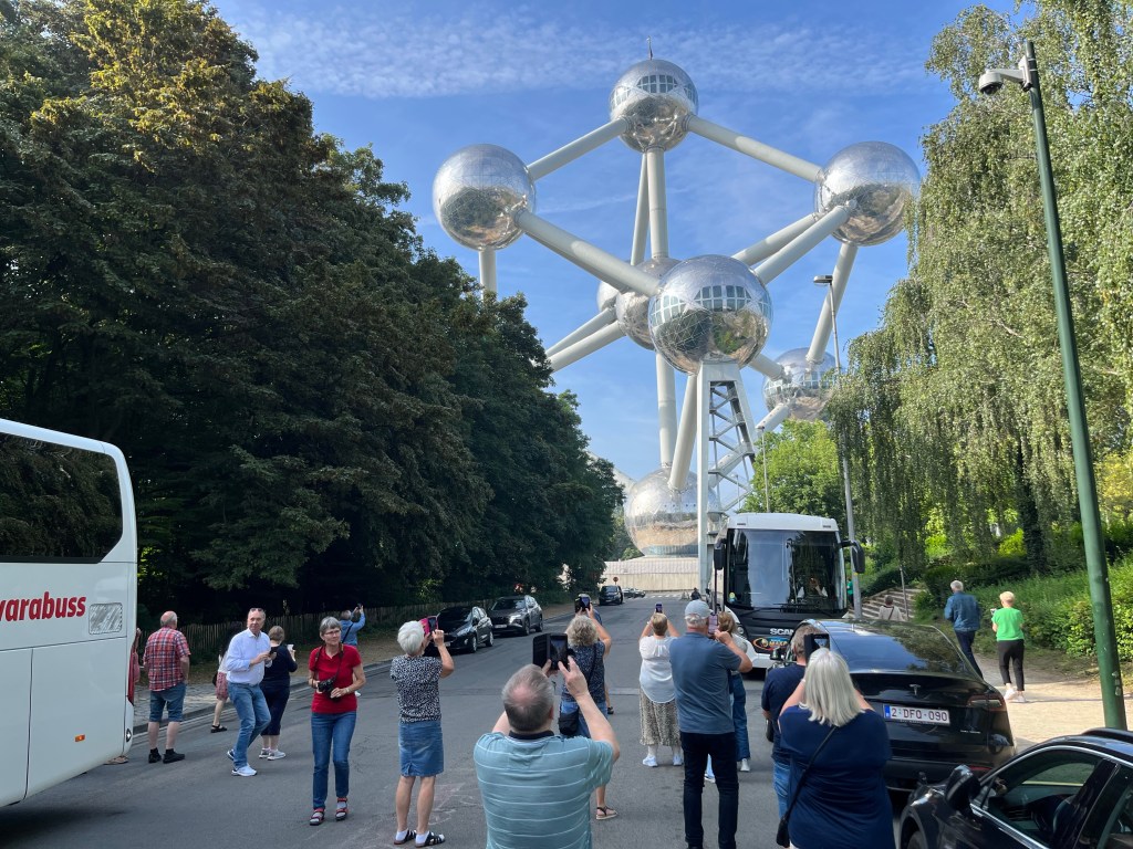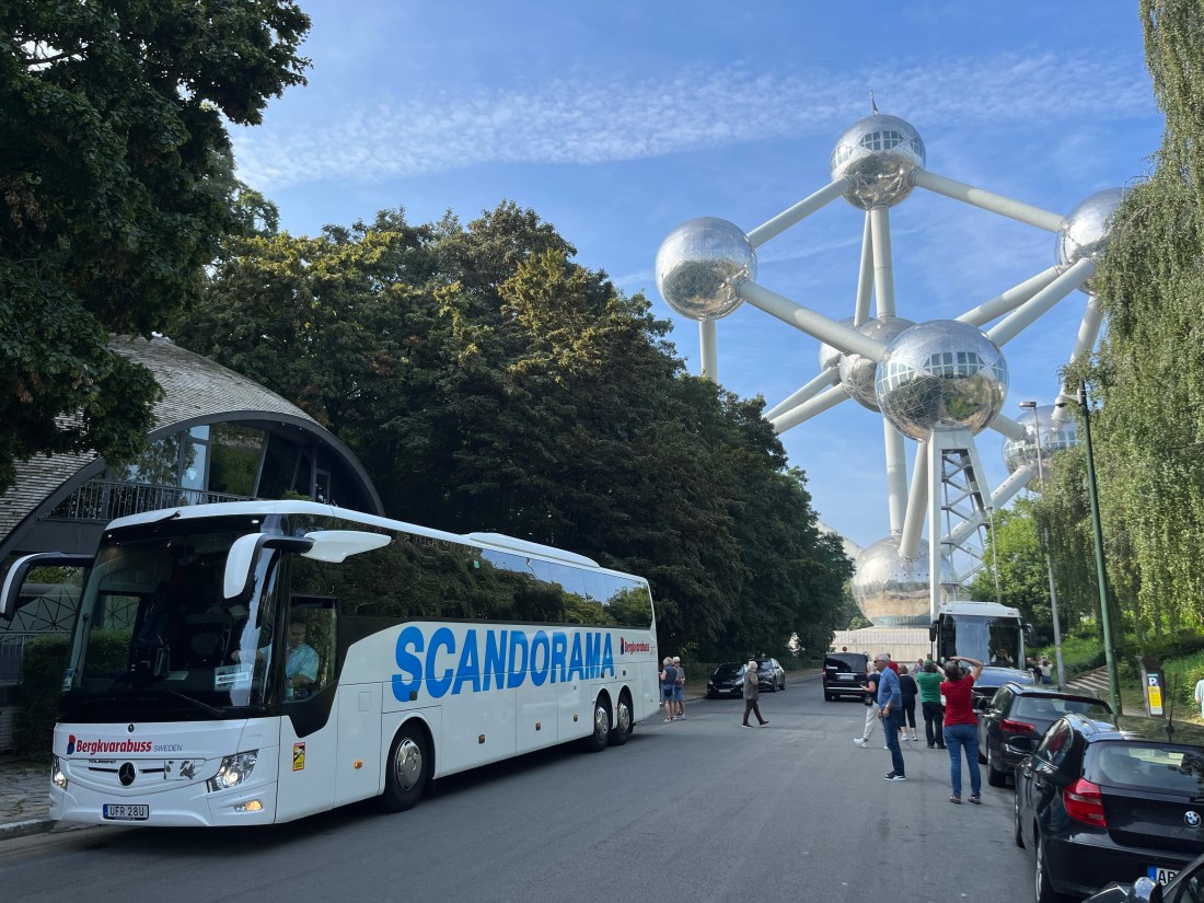 Kl 07.00 styrde vi kossan mot Bryssel. Vi körde in i staden via Atomium där Emanuel svängde in och lät oss gå ur bussen en liten stund för att ta kort på Bryssels kända landmärke. Atomium är en uppförstorad järnatom och ett 102 meter högt byggnadsverk som skapades inför Världsutställningen i Bryssel 1958.