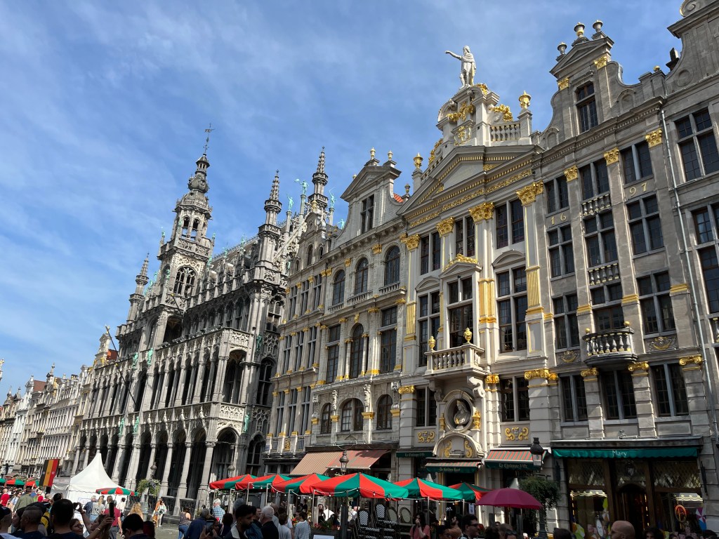 Vi åkte in till city och blev avsläppta vid Place d’Espagne. Där började vi får stadspromenad. Vi stannade först till vid skulpturen som föreställer Don Quijote och Sancho Panza. Vi gick sen vidare ner mot Grande-Place där vi njöt av de förgyllda husen.