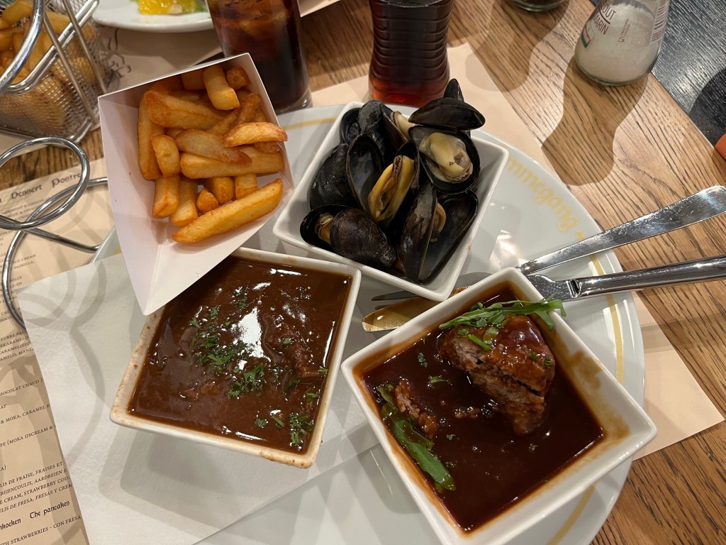 Vi åt lunch på Brasserie Ommegang där vi avnjöt tre belgiska specialiteter. Det är lika gott varje gång.