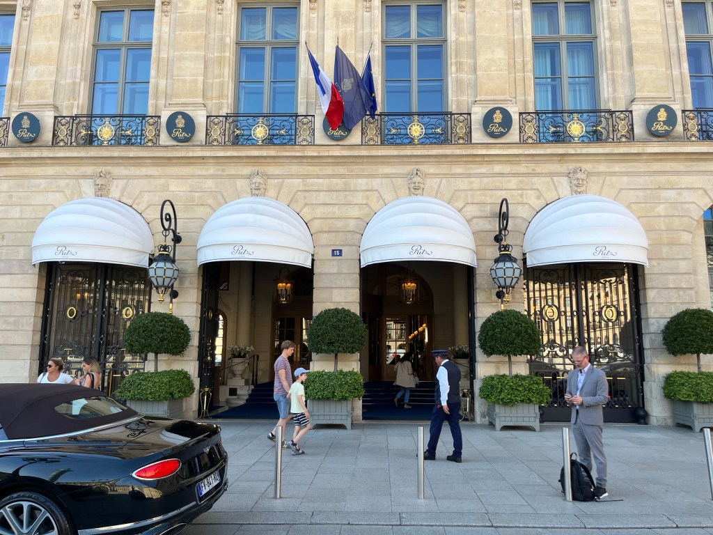 Lyxhotellet Hotel Ritz som grundades av Cesar Ritz vid sekelskiftet finns på nr 15. Här finns rum och sviter samt rum med extra lyx. Jag har hört att man kan få ge 145 000 kr för ett dubbelrum. Jag googlar nu och om man vill hyra ett dubbelrum denna vecka så kostar det 35 000 kr för en natt men imorgon natt kostar det 615 000 kr. Det kanske händer något särskilt i Paris så det nästan är fullbelagt.