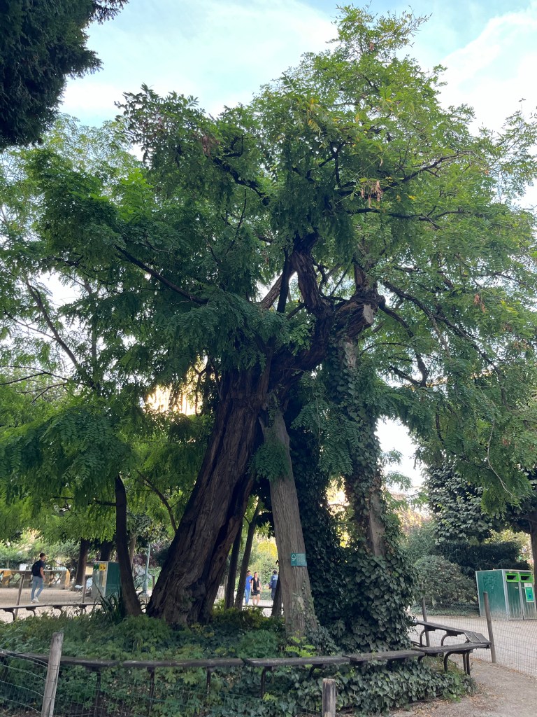 Hon ville visa mig en grej. Vi gick till Square Réné-Viviani som ligger i Quartier Latin, Latinkvarteren. Det är en park och där finns detta träd som planterades 1601. Det är Paris äldsta träd som alltså är 422 år i år.