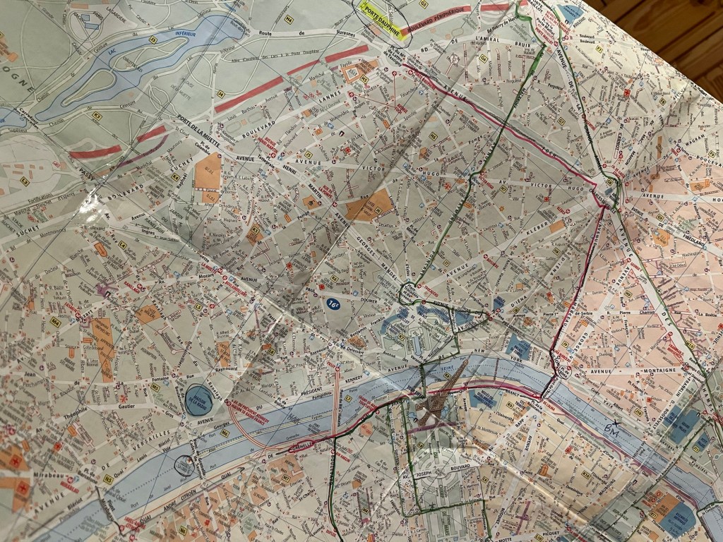 Tänk att man kan få uppleva en sådan glädje bara genom att ta fram Pariskartan och rita ut kommande bussturs resväg in i Paris. 🇫🇷 Snart ska vi på Seinekryssning och då mönstrar vi på båten på Quai de Grenelle strax sydväst om Eiffeltornet. 😊