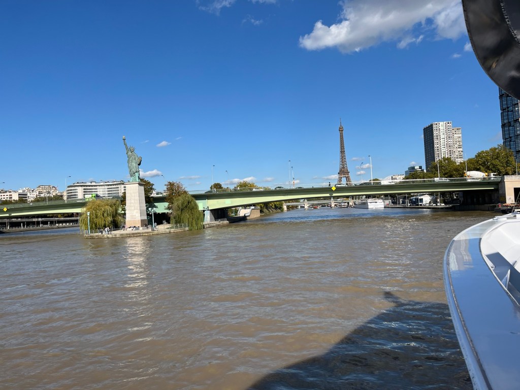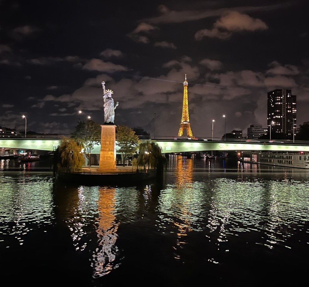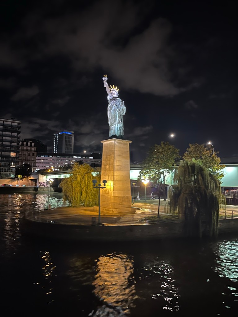 Kl 23.00 var det dags att lätta ankar. Nu styr vi norrut på floden Seine. 🇫🇷 Så fantastiskt vackert med det blinkande Eiffeltornet och den lilla frihetsgudinnan som Frankrike fick av USA som en symbol för deras vänskap efter att de gett USA den stora frihetsgudinnan för att fira 100-årsjubileet av den amerikanska självständighetsförklaringen. 🤗 Paris i mitt hjärta!🫶 💙🤍♥️