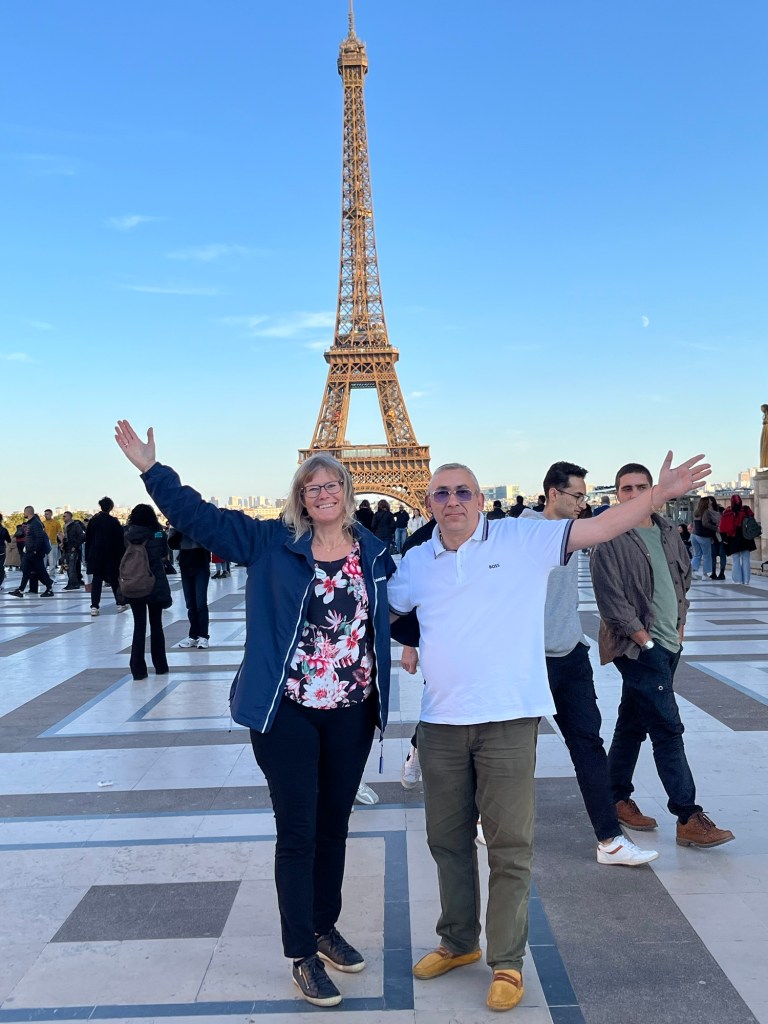 Vi började dagen med en stadsrundtur med buss i vårt älskade Paris. Turen tog nästan tre timmar så vi hann se väldigt mycket. Vi stannade till vid Eiffeltornet. Willy och Monica poserar så glatt.