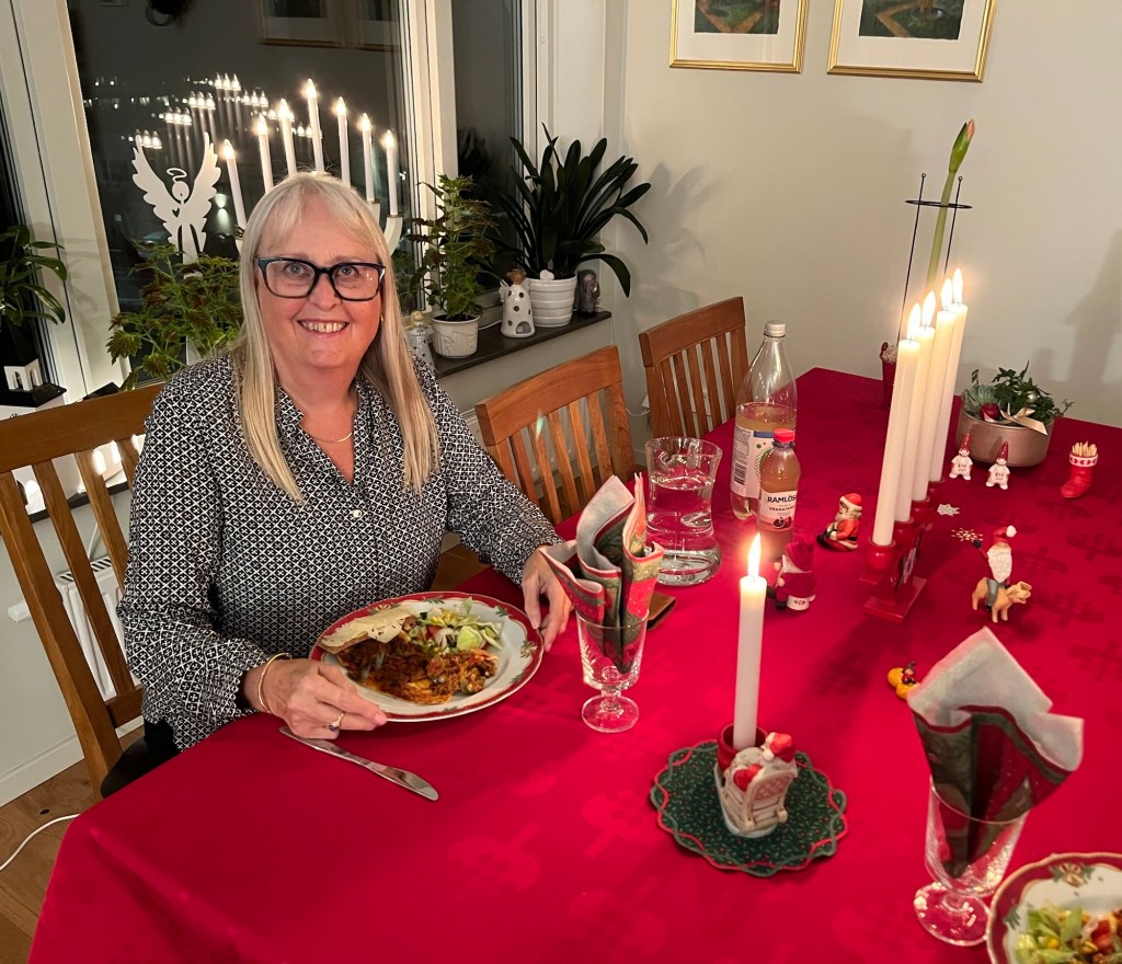 Ikväll blev det extra julmysigt då min fina frankofila franskkollega och vän Gunnel kom hit. Vi brukar se film tillsammans. Vi har haft en trevlig kväll med mat och filmtajm.