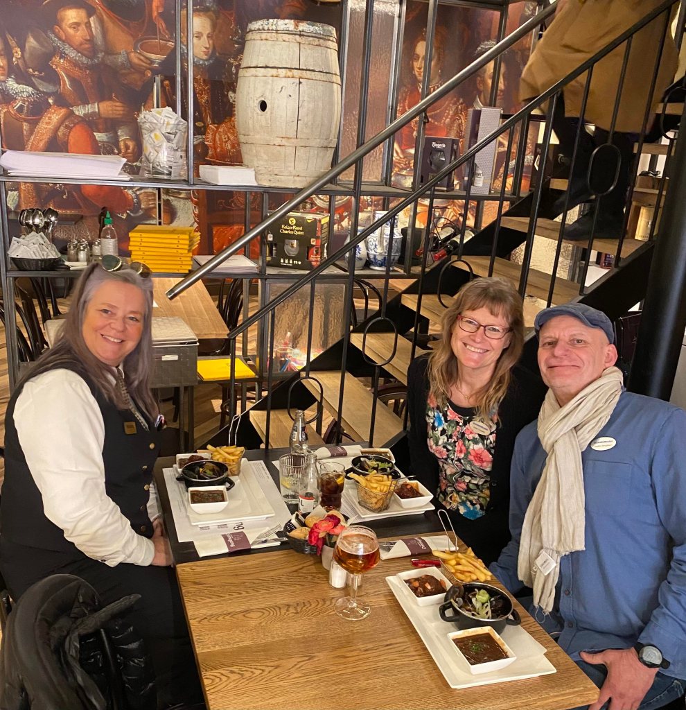 Vi åt lunch på Brasserie Ommegang. Där serverades bl a Moules-frites, en rätt som Belgien är mycket känd för. Det är musslor som är tillagade i en vitvinsås och serveras med pommes.
